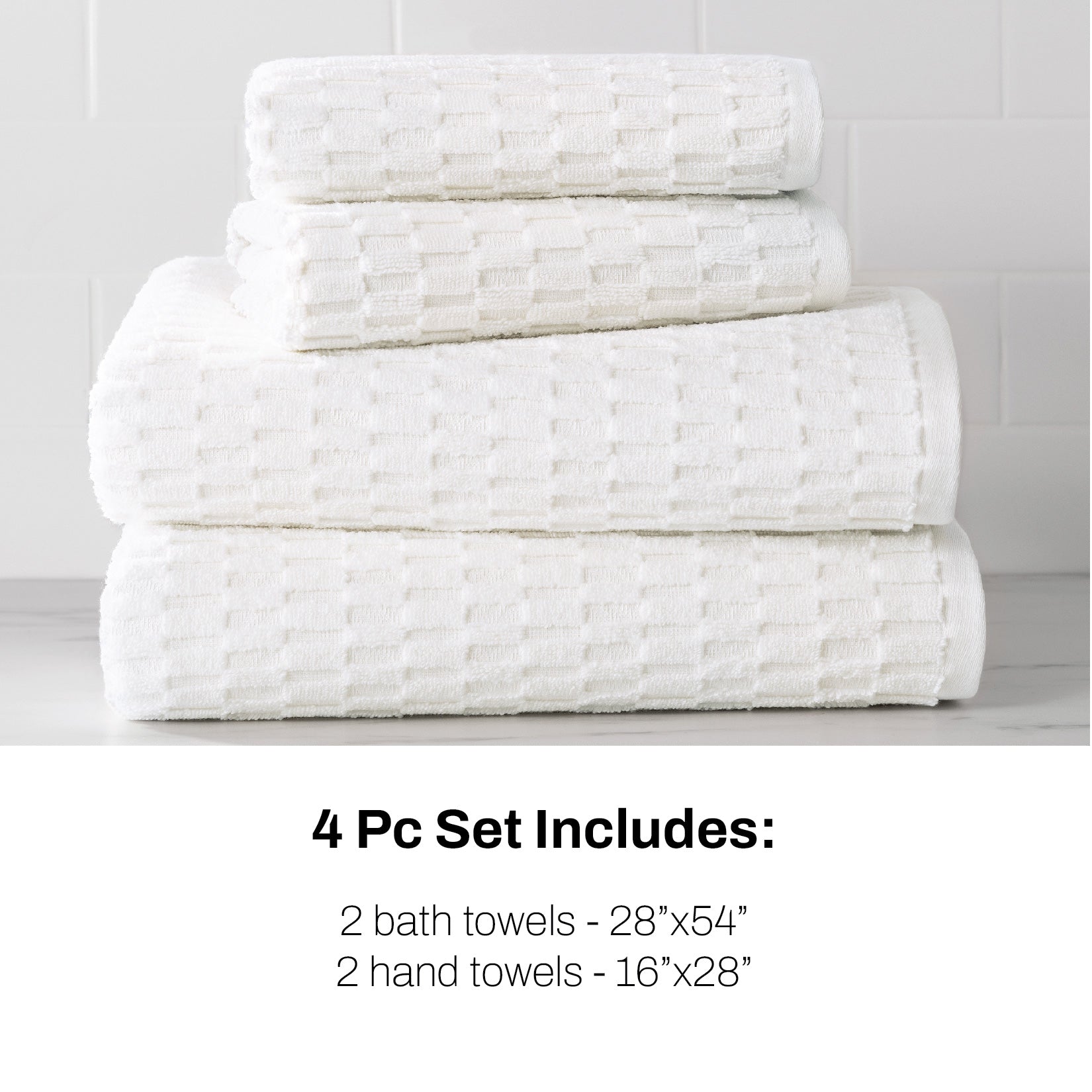 - Set includes: (x2) Bath Towels, (x2) Hand Towels