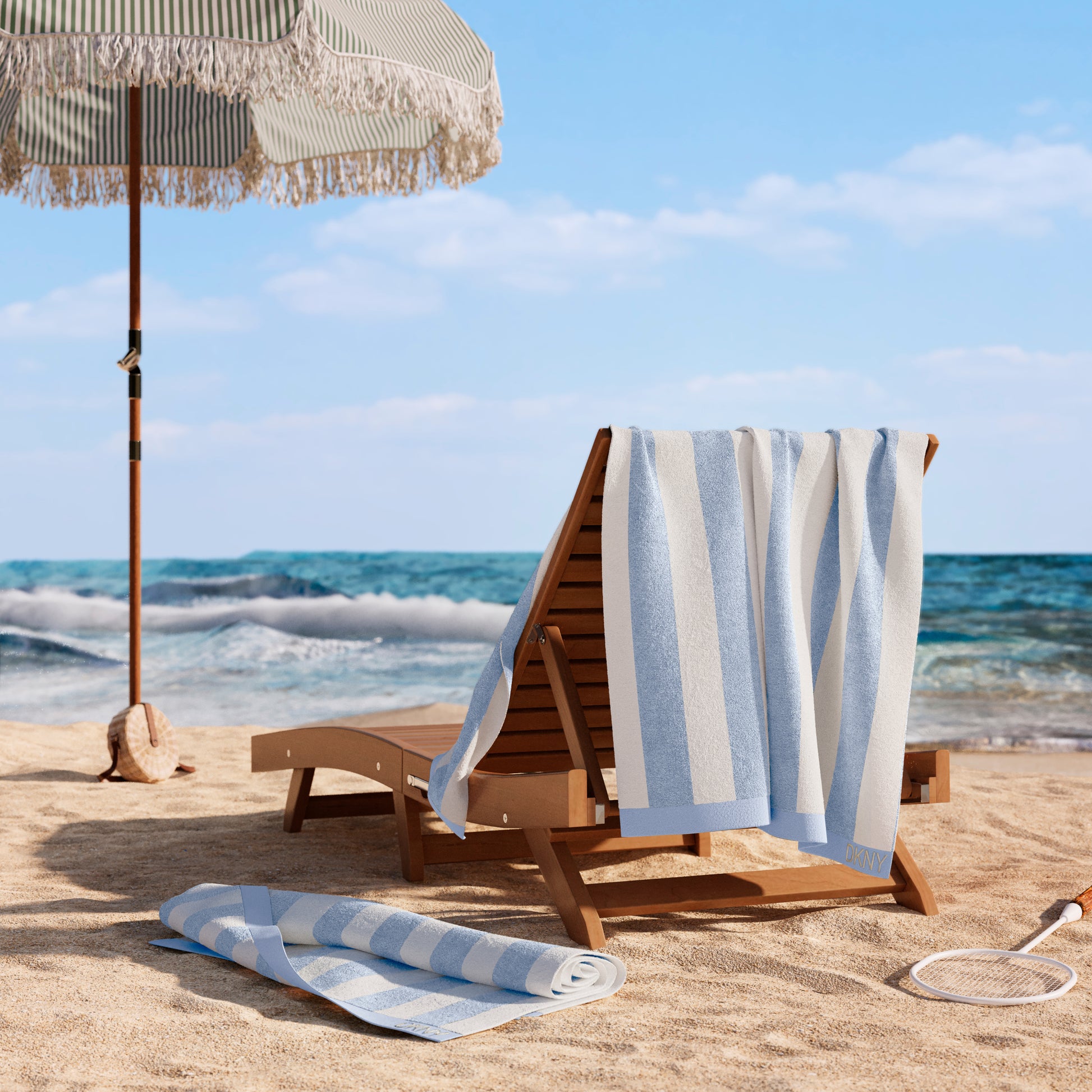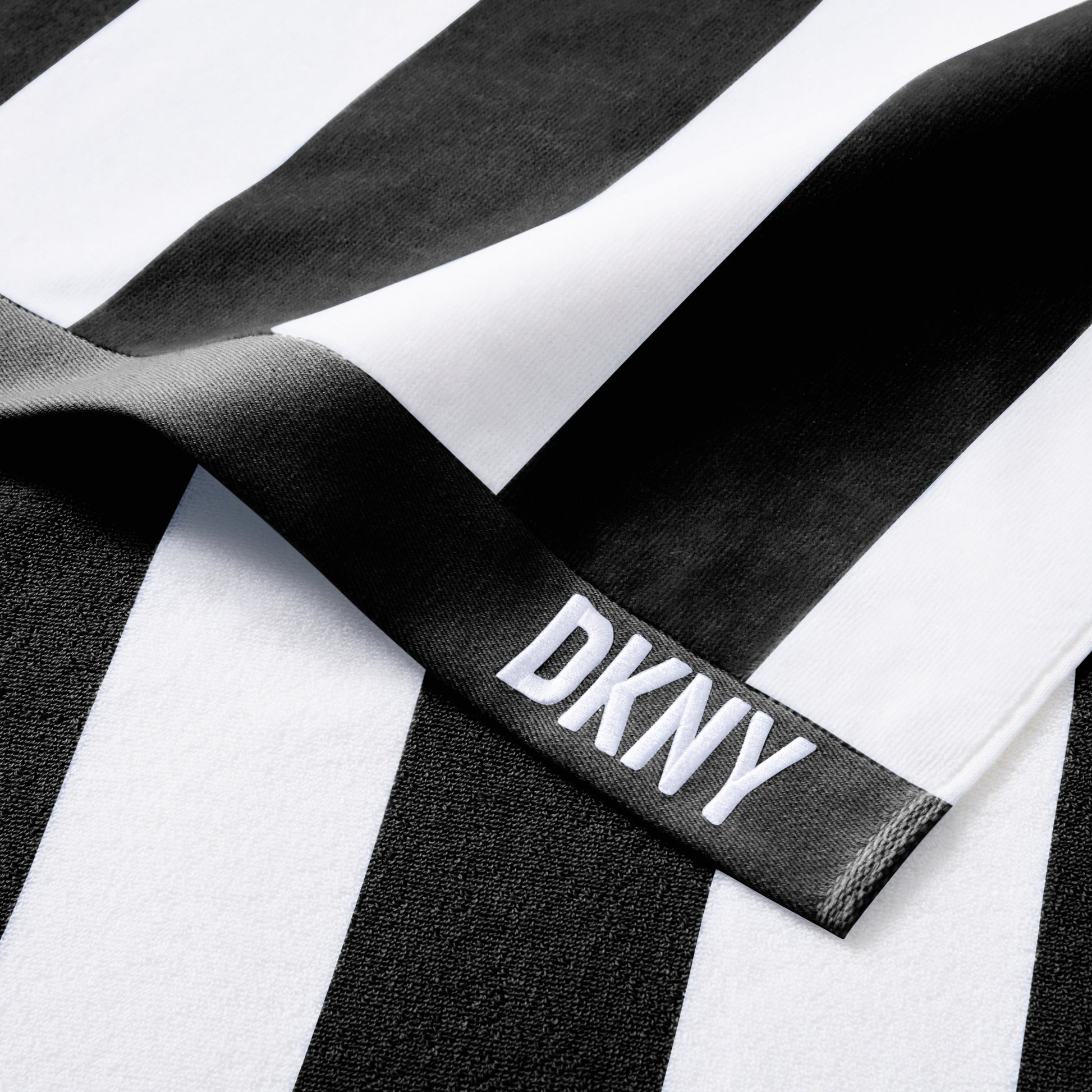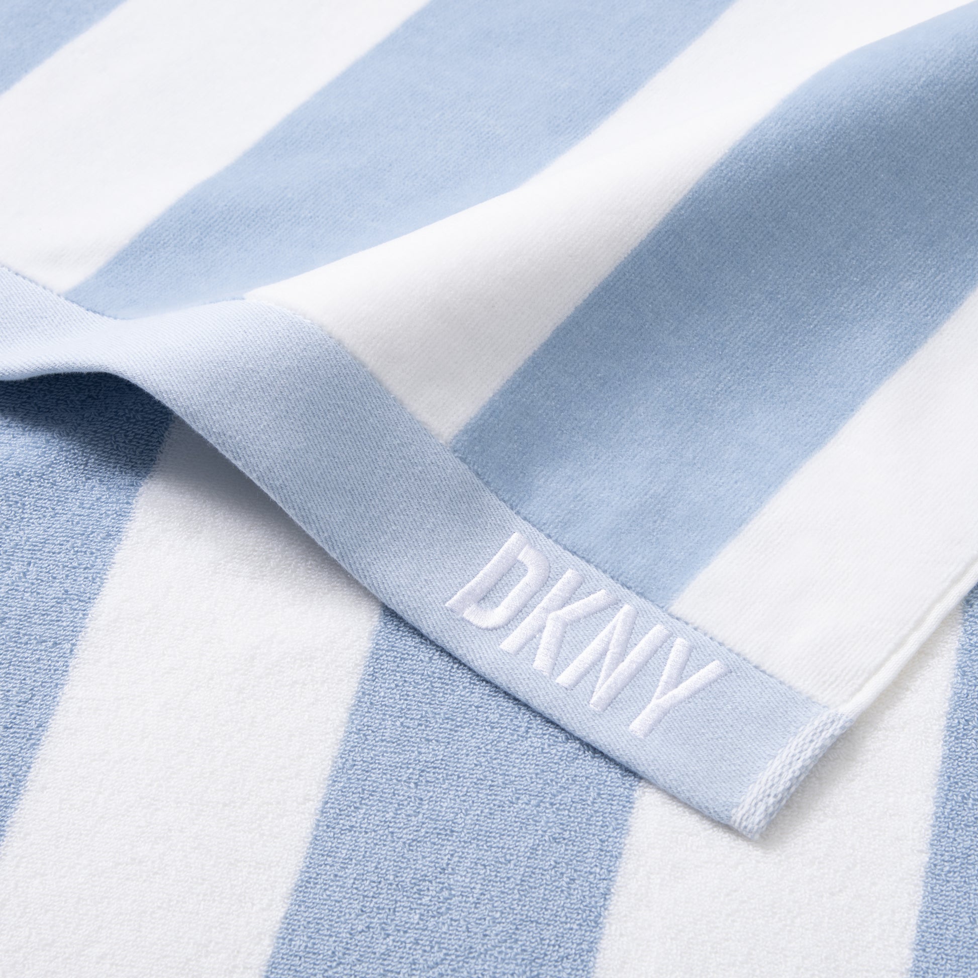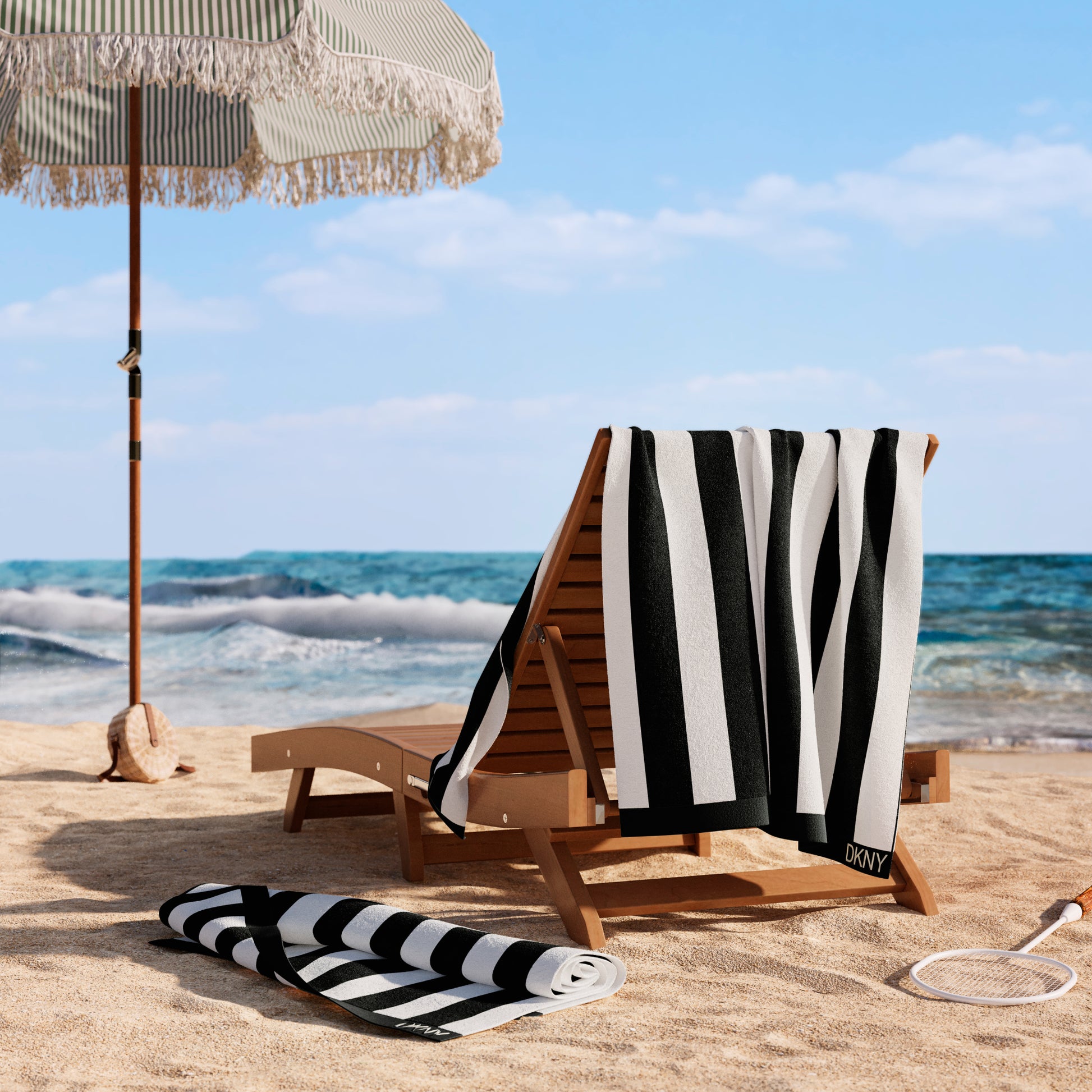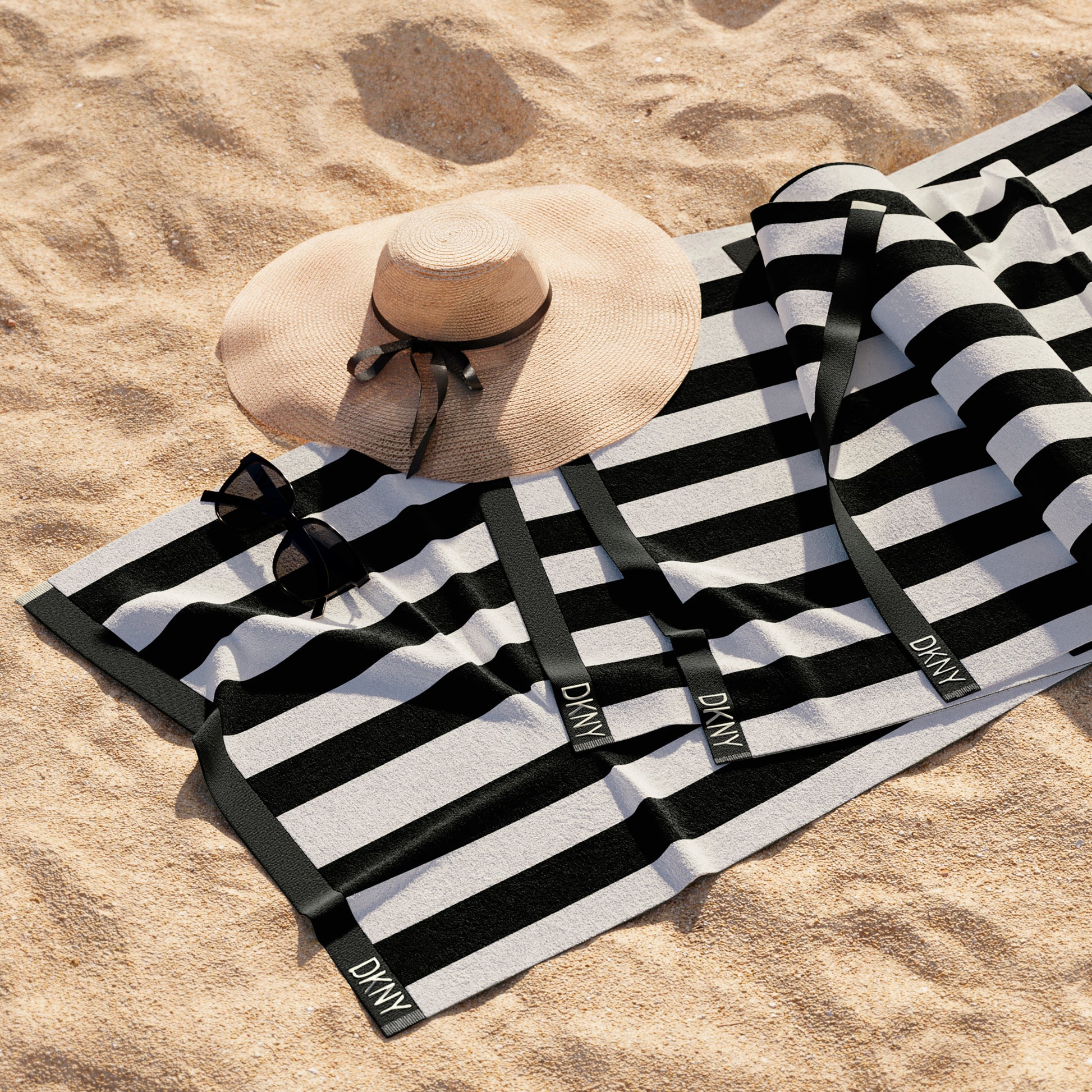 Your next beach day just got a stylish update with the DKNY Cabana Stripe 4-Piece Beach Towel Set. Classic cabana stripes are yarn-dyed for long-lasting color, perfect for repeat swim days all season long. The sheared cotton ensures a plush touch that is highly absorbent. The set of four is great for sharing with beach buddies or having a towel on hand for your daily sunny escapades. Conveniently packed in a reusable canvas tote bag for easy carrying.