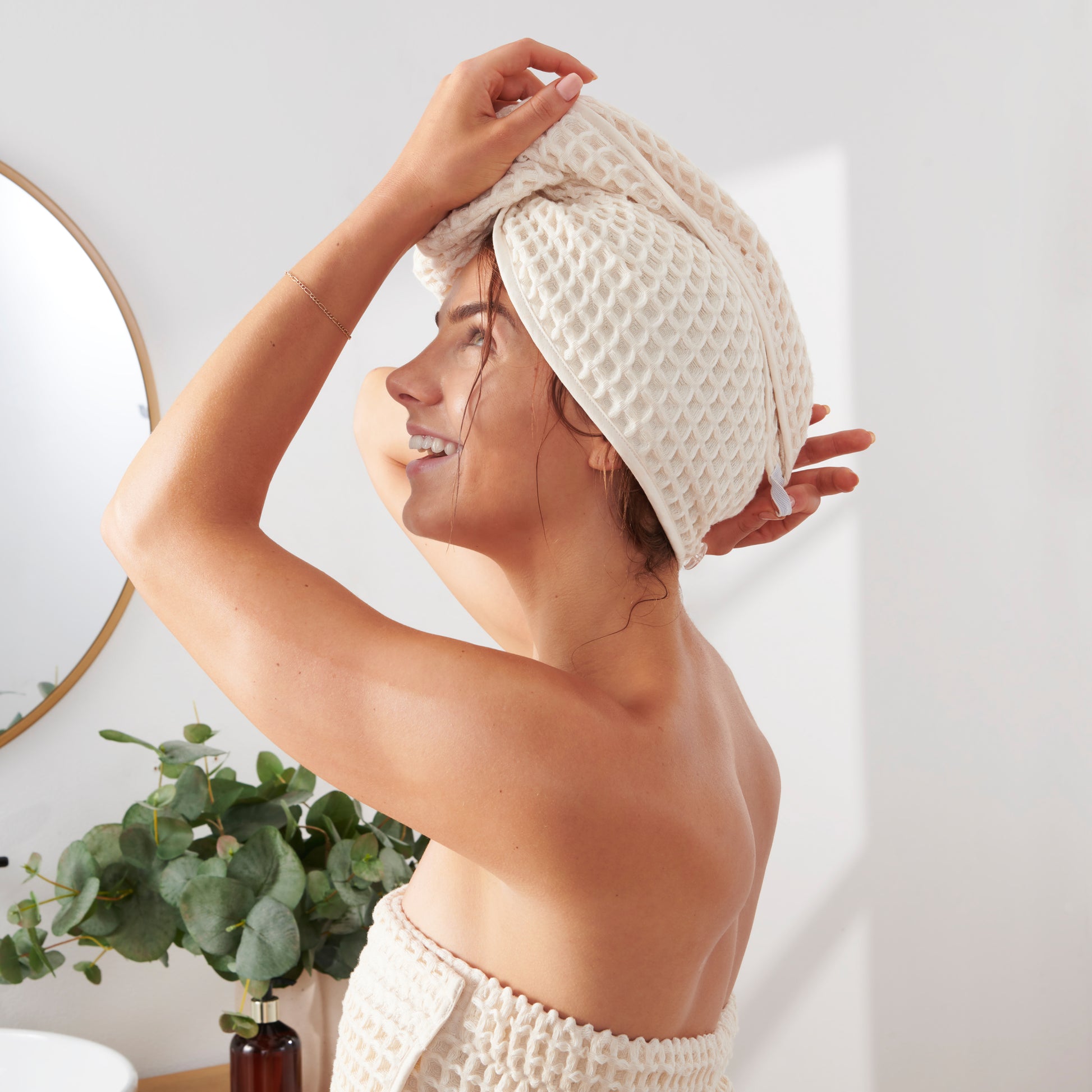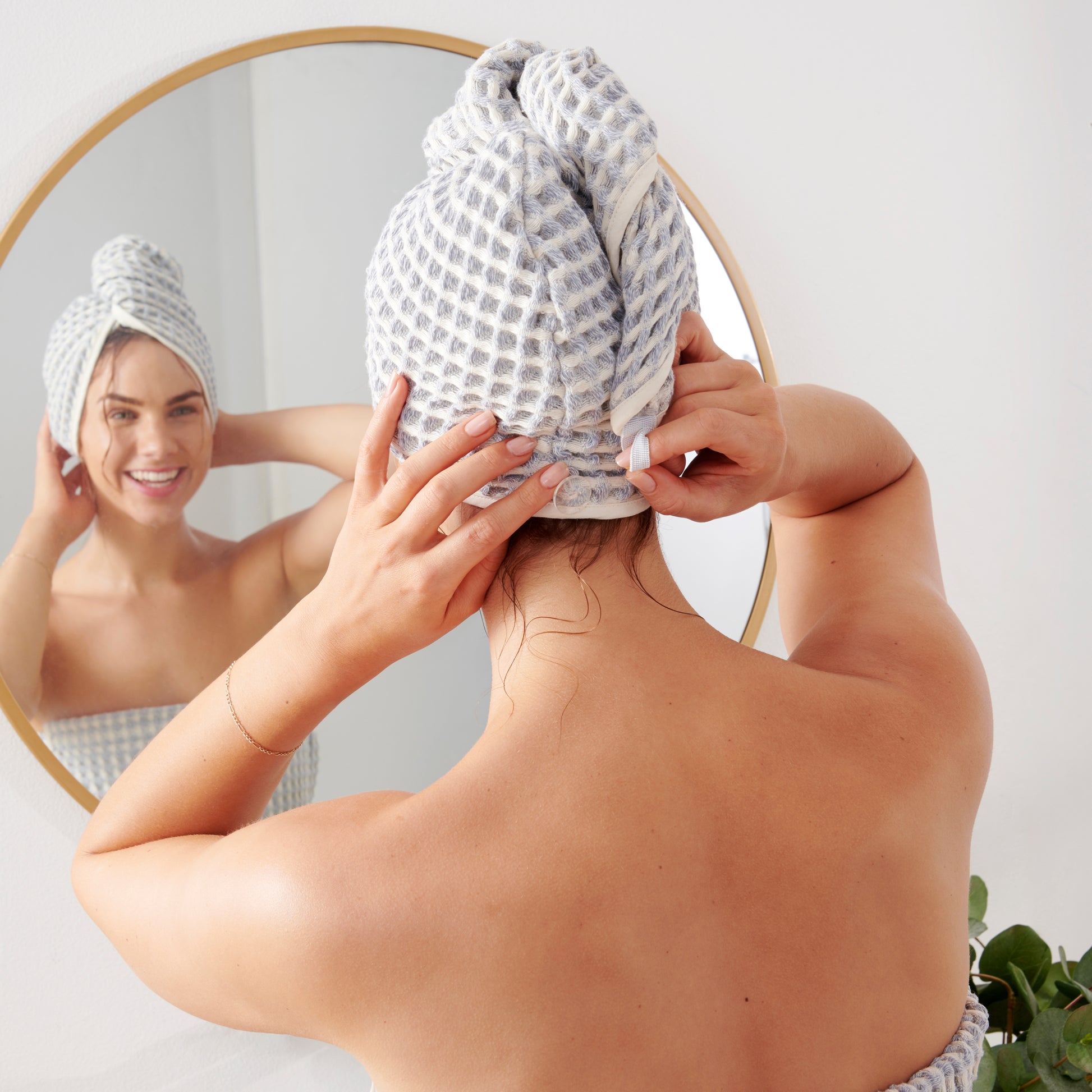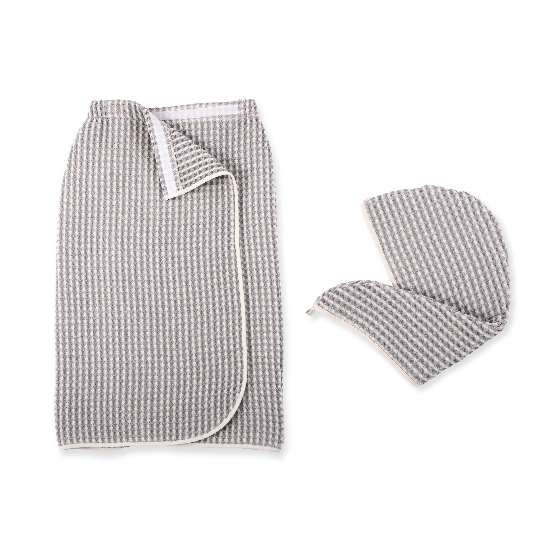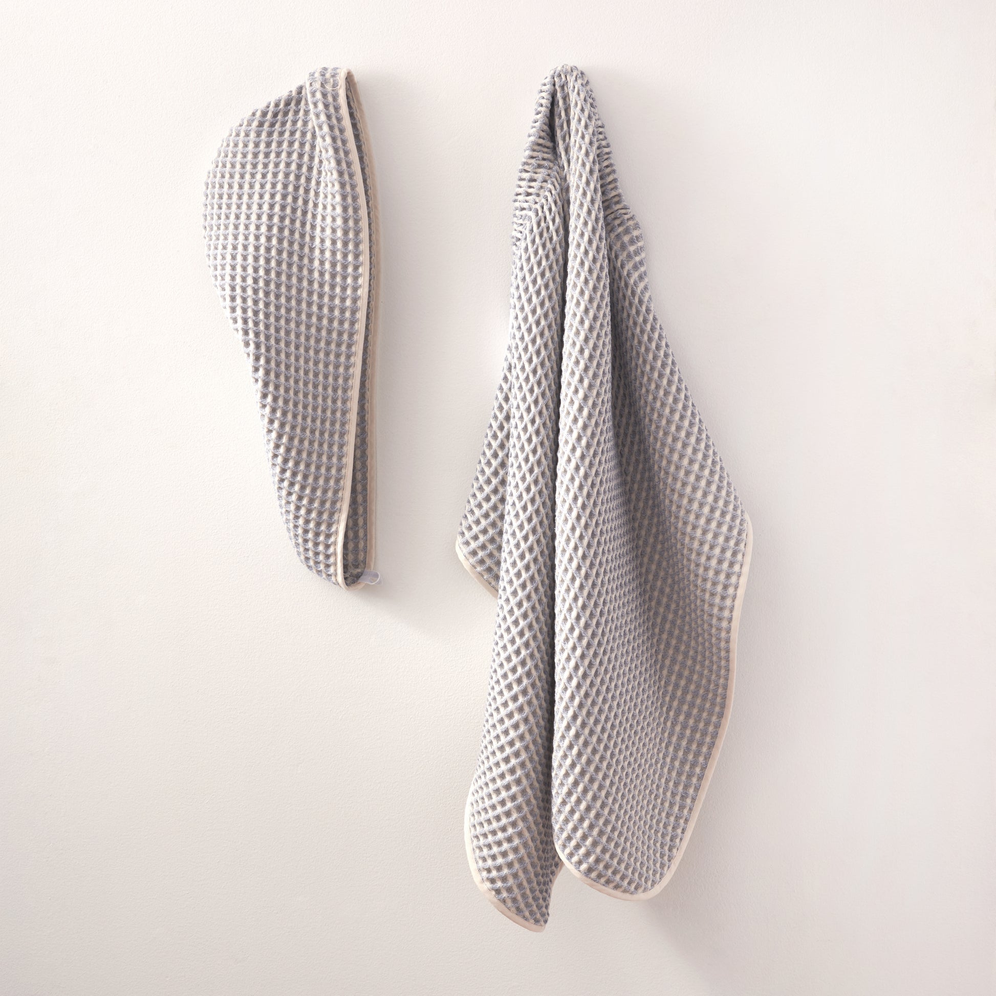 DKNY PURE Yarn Dyed Waffle Unbleached Cotton Body & Hair Wrap Set