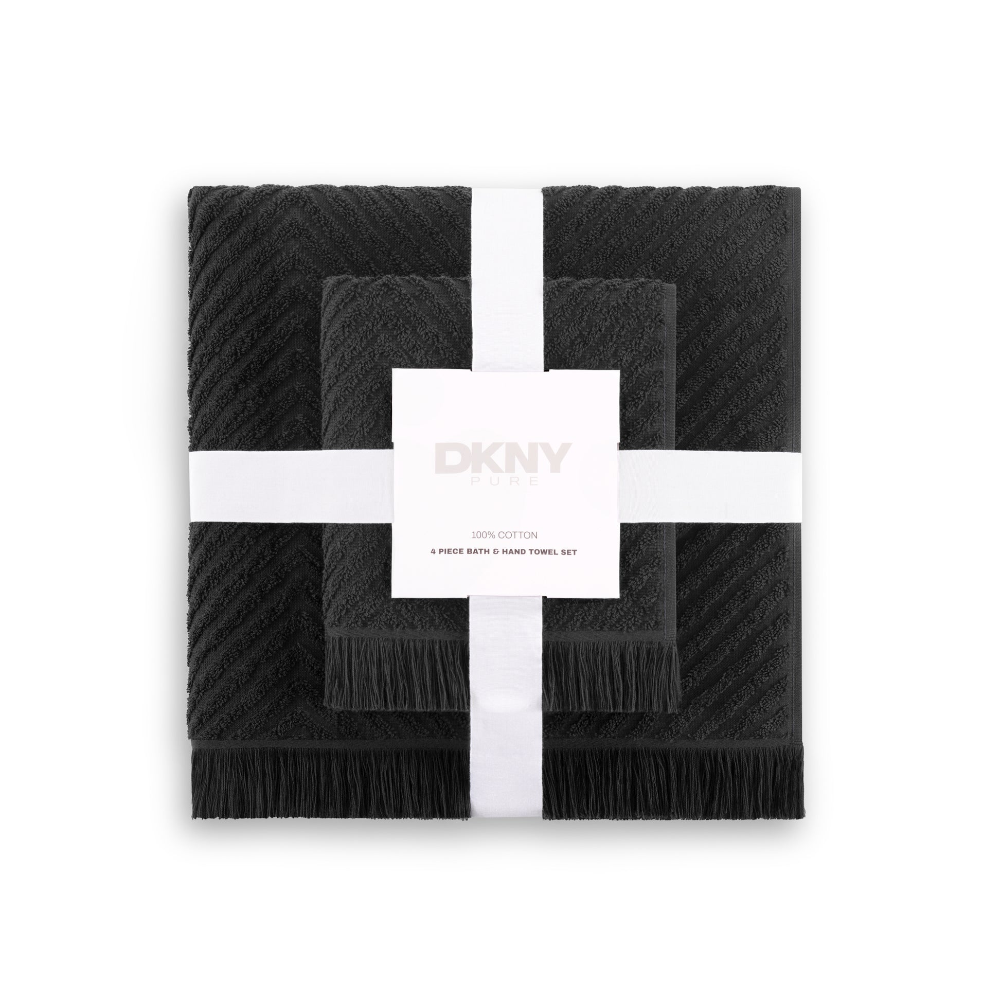DKNY PURE Herringbone Bamboo Charcoal Bath and Hand Towel 4-piece Set