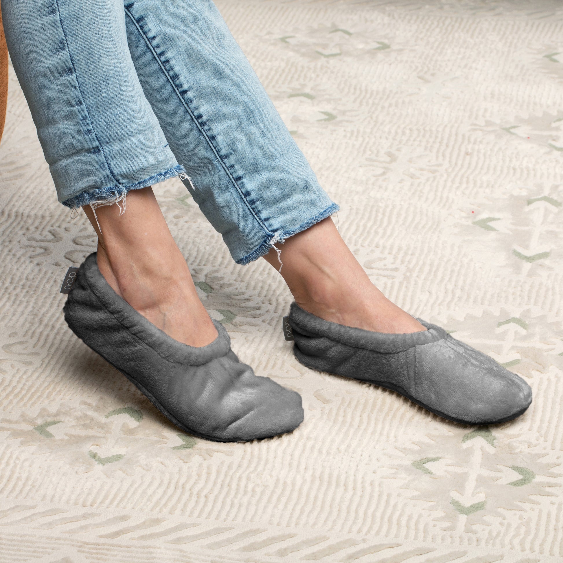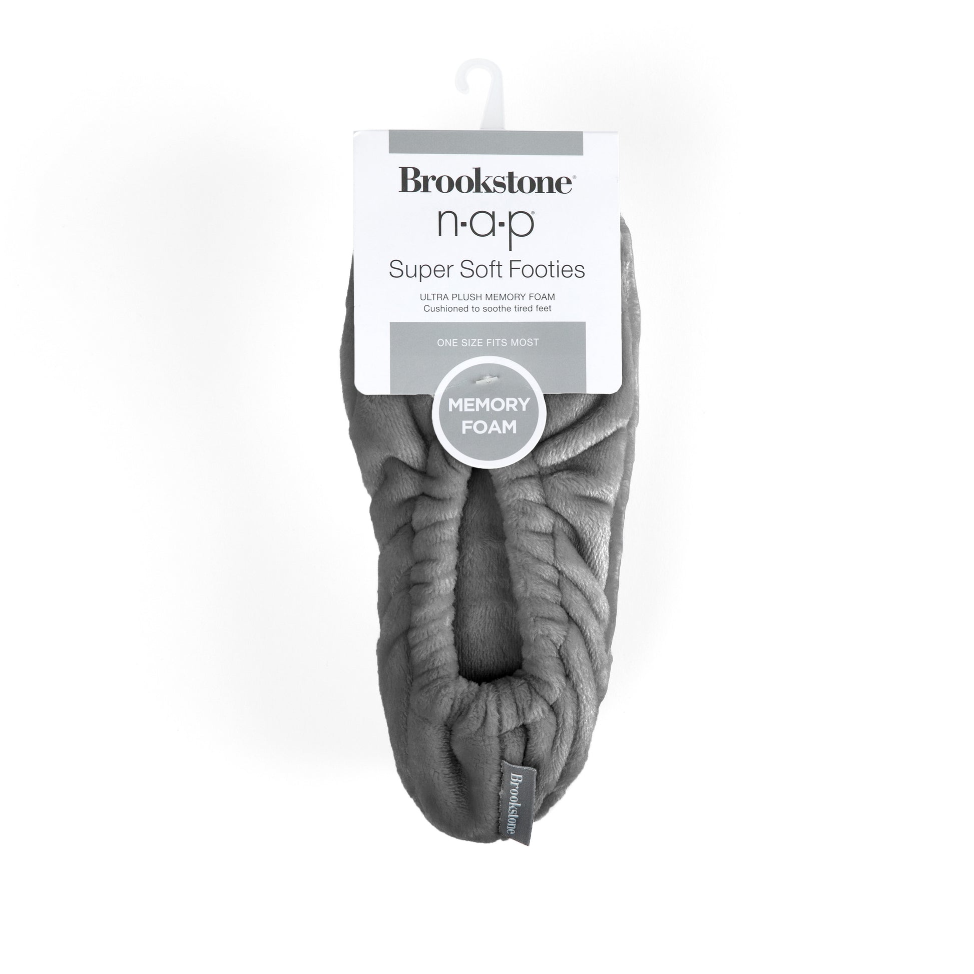 Experience the ultimate comfort as you go about your day with the Brookstone Nap Super Soft Footies. These stretchy, one-size-fits-most footies feature a memory foam insole that provides pressure relief to tired feet. Super soft in various solid colors and prints. Non-skid silicone printed bottom. Walk on cloud-like comfort all day long.
