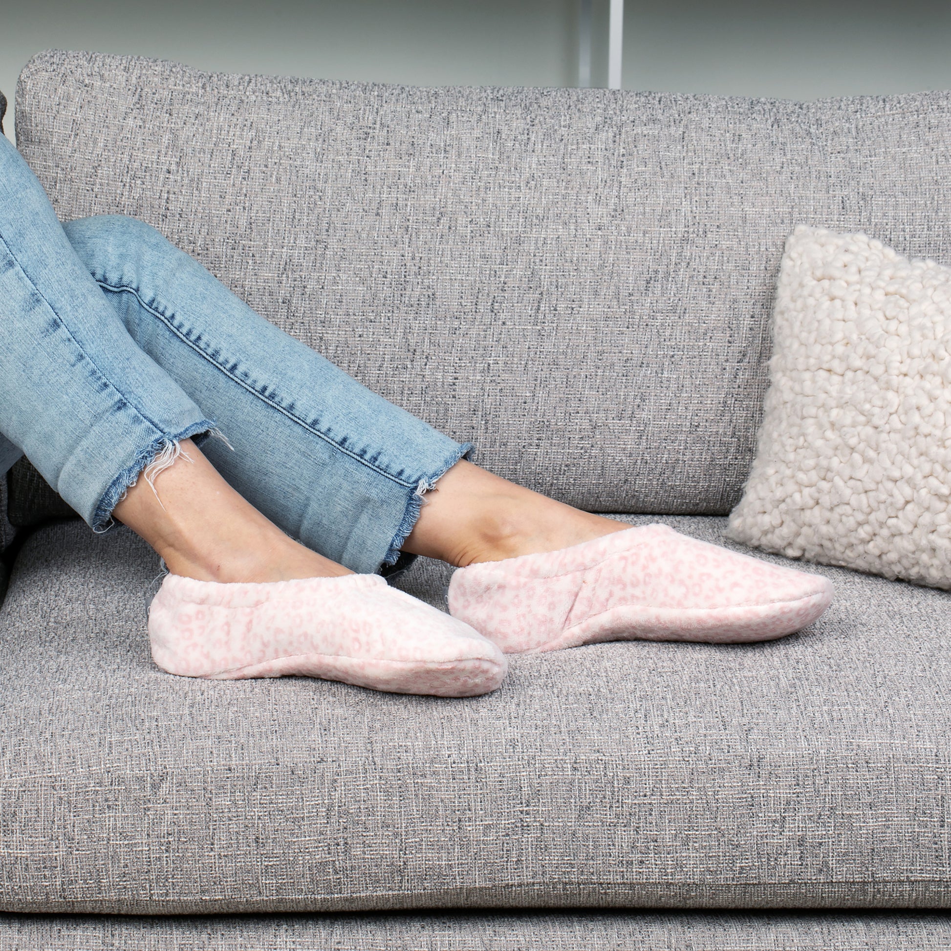 Experience the ultimate comfort as you go about your day with the Brookstone Nap Super Soft Footies. These stretchy, one-size-fits-most footies feature a memory foam insole that provides pressure relief to tired feet. Super soft in various solid colors and prints. Non-skid silicone printed bottom. Walk on cloud-like comfort all day long.