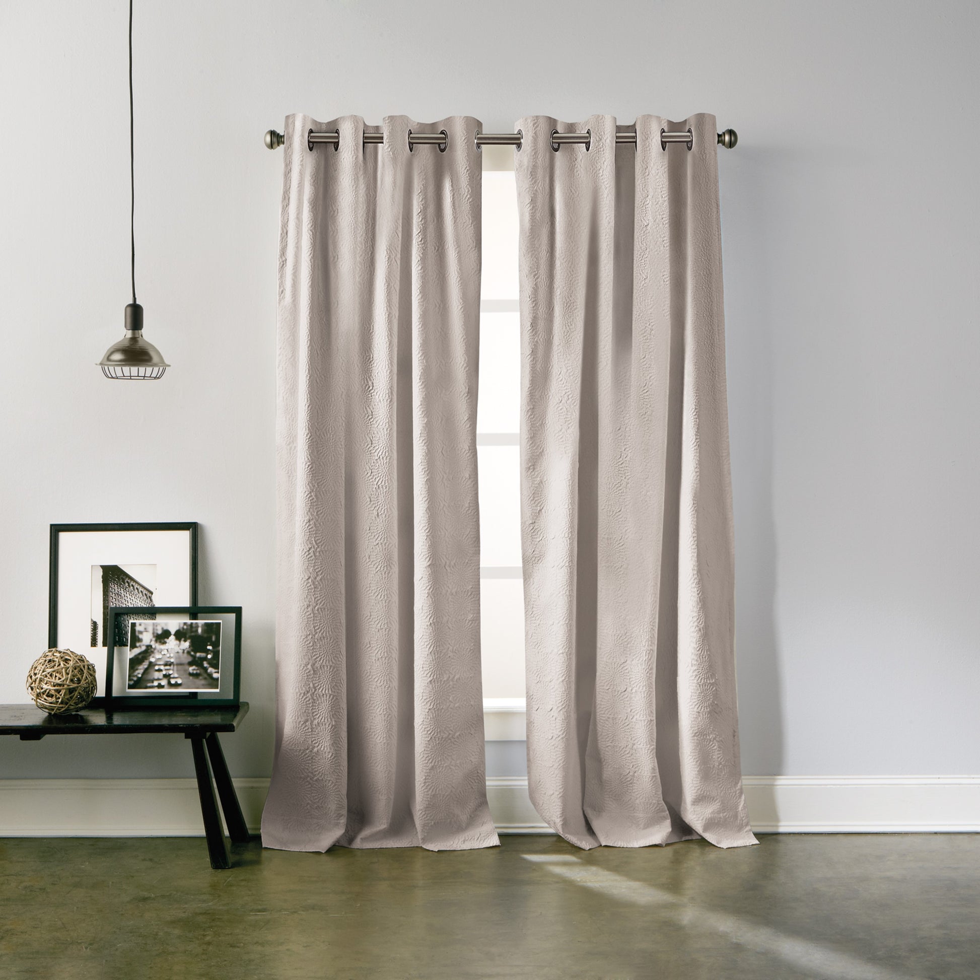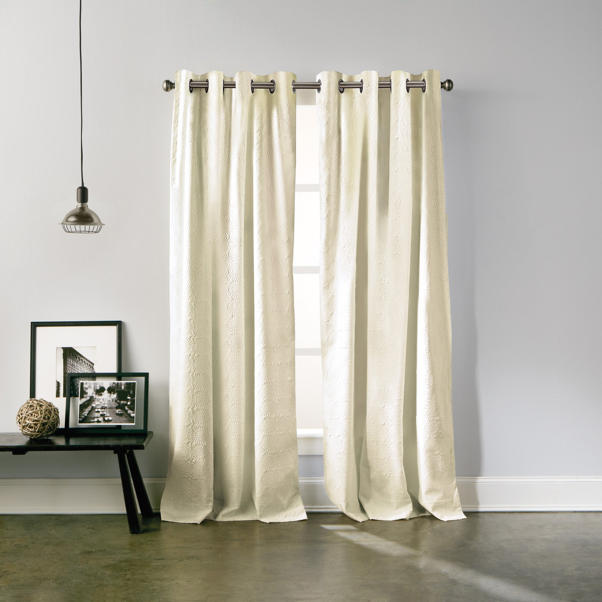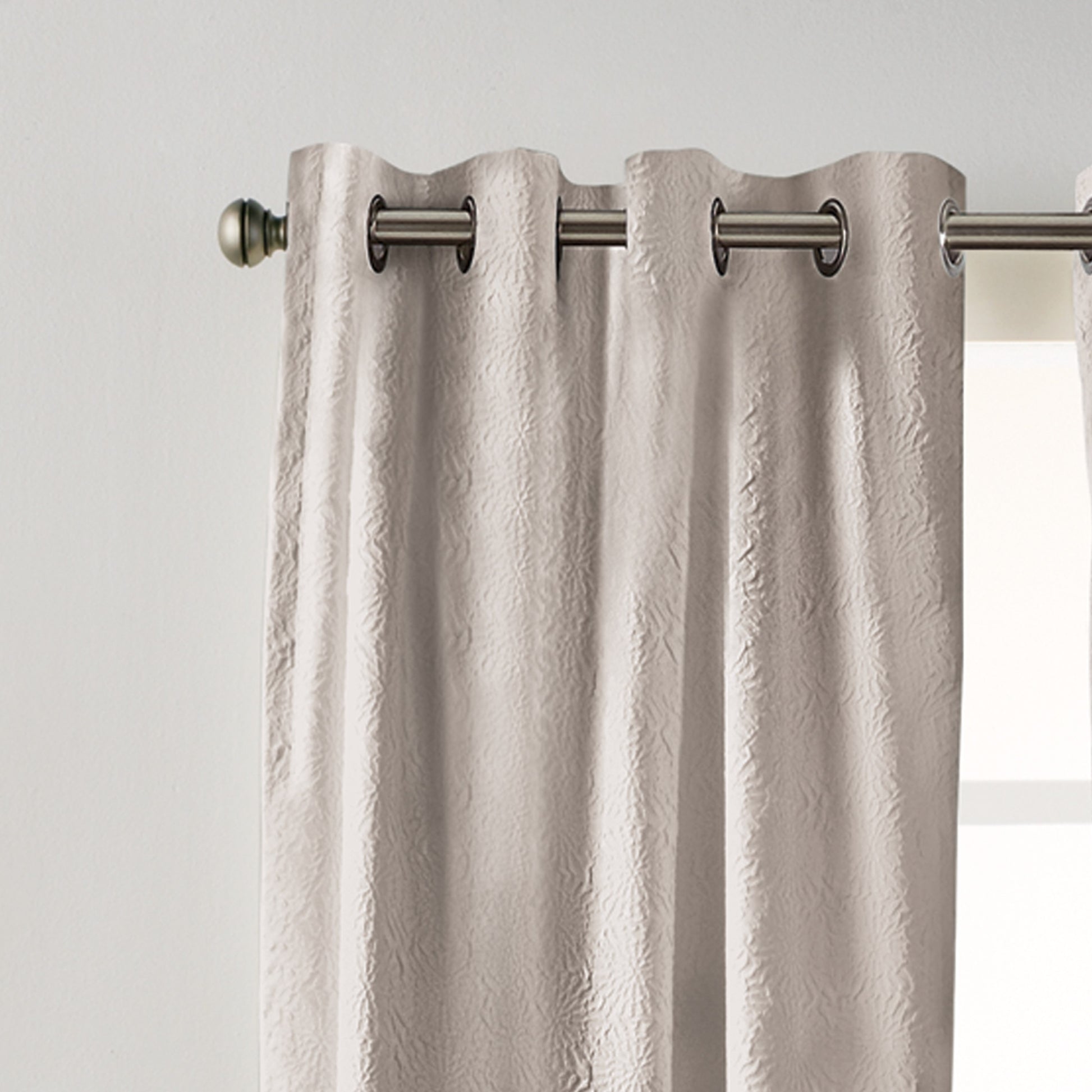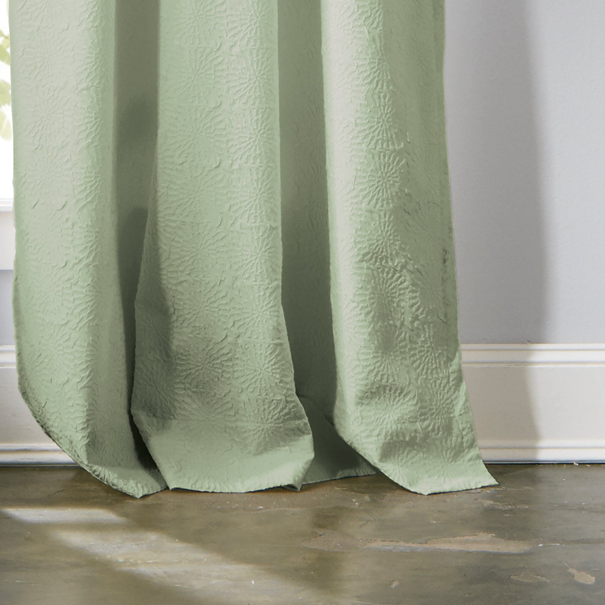 Update your room with subtle texture and a wash of soft color with the DKNY Chrysanthemum Floral Curtain Collection. The sculpted floral design blooms with style and interest on the medium-weight fabric. Using Microsculpt ™ technology, the floral pattern lends texture that will not settle over time. The single panel can be hung by the grommets for a sophisticated appearance.
