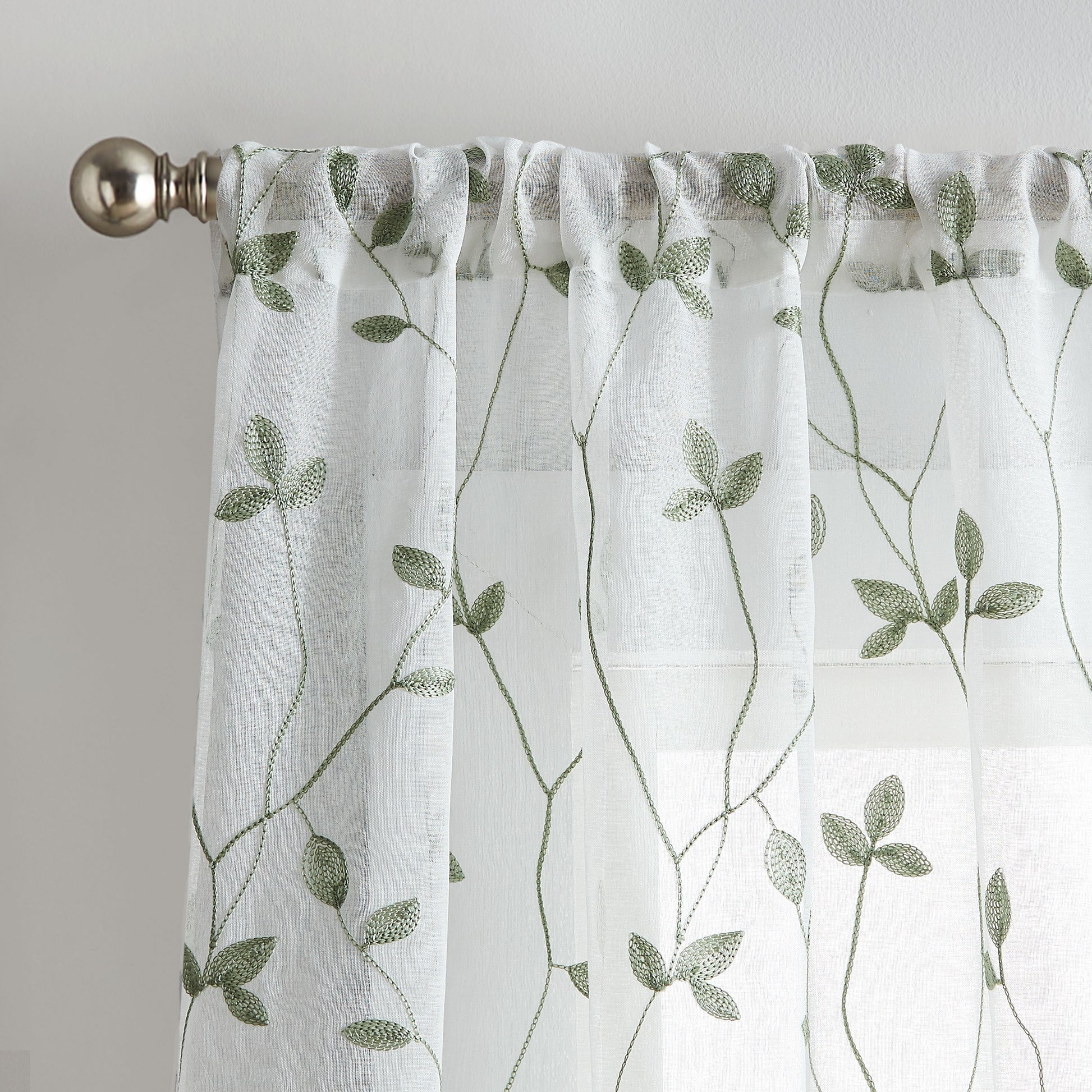 Keep your space bright and inviting with the Curtainworks Botanical Embroidery curtain panel pair. A vine and leaf design are embroidered on the face of this panel pair to offer subtle detail and complement your space with interest. Slip this set of two on a standard curtain rod to hang by the rod pocket for a clean, elegant appearance.