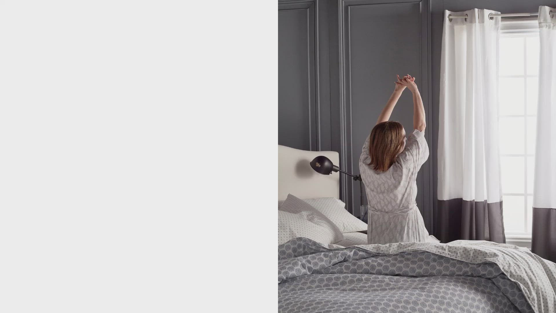 Take a page right out of your favorite fashion magazine with this eye-catching color-blocked grommet top tailored window panel!