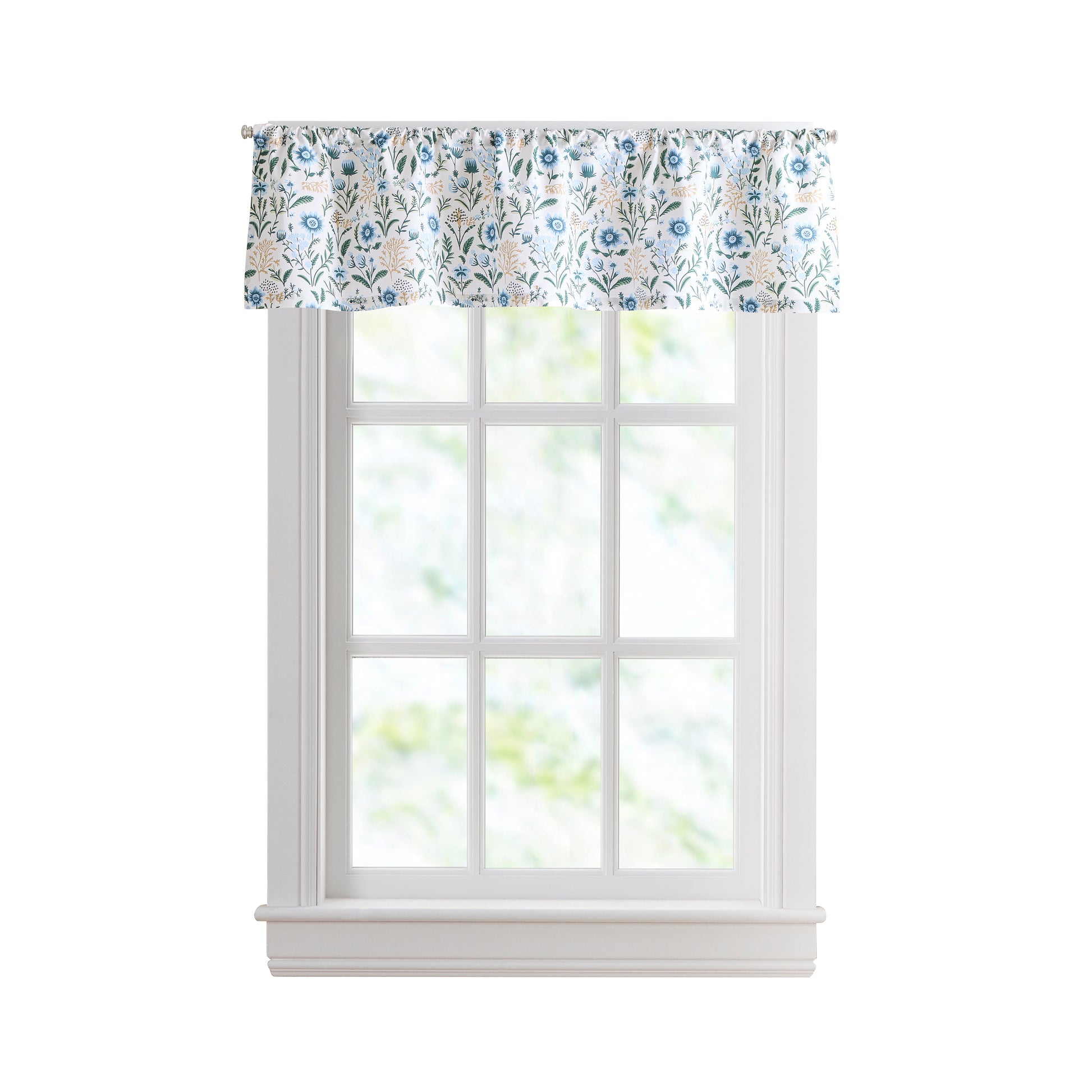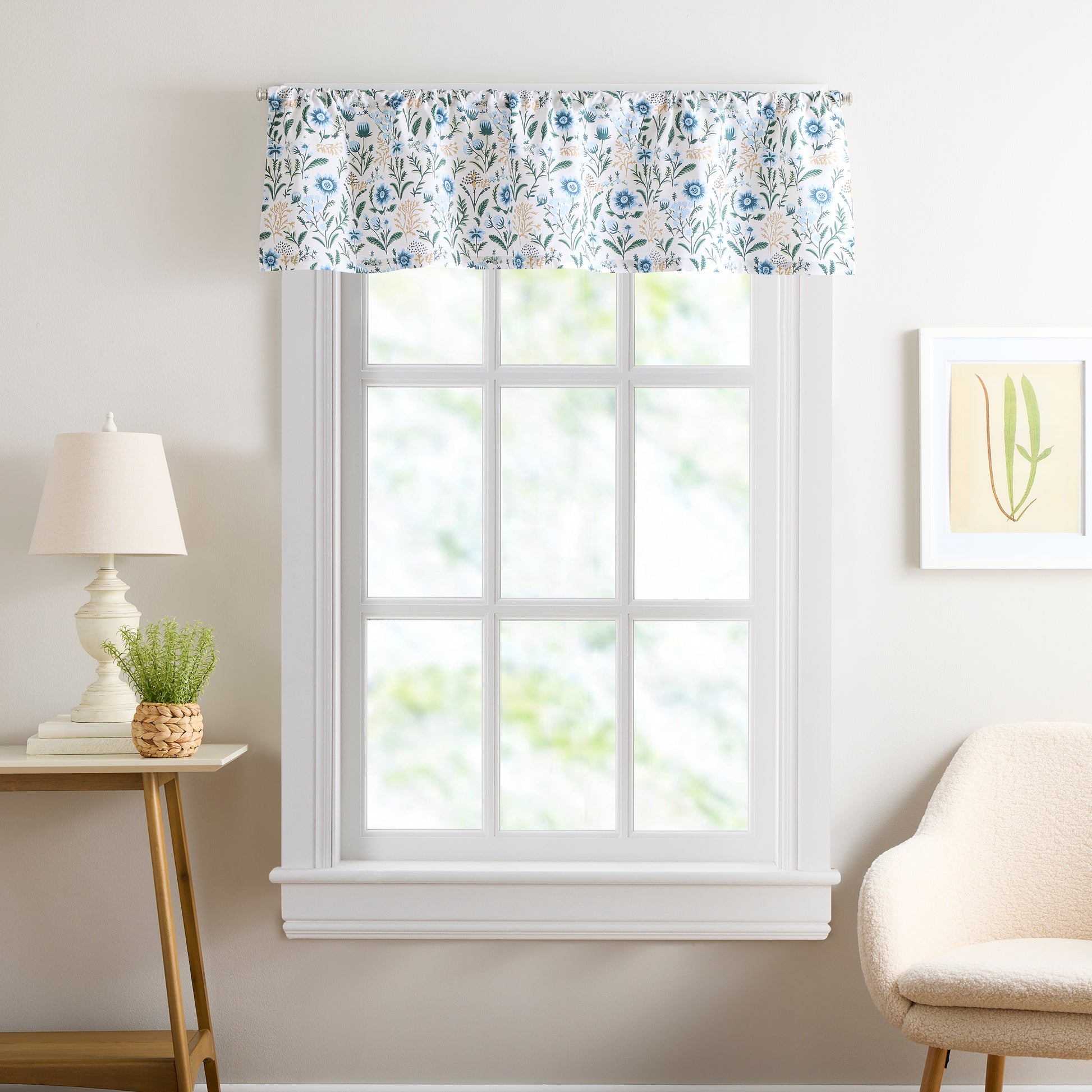 Give your small windows a fresh pop of color with the Curtainworks Lena Valance. Designed for smaller windows, this valance features a lively floral print in soft blues, leafy greens, and warm golden accents. 100% BCI cotton and light filtering to brighten your home in one effortless update.