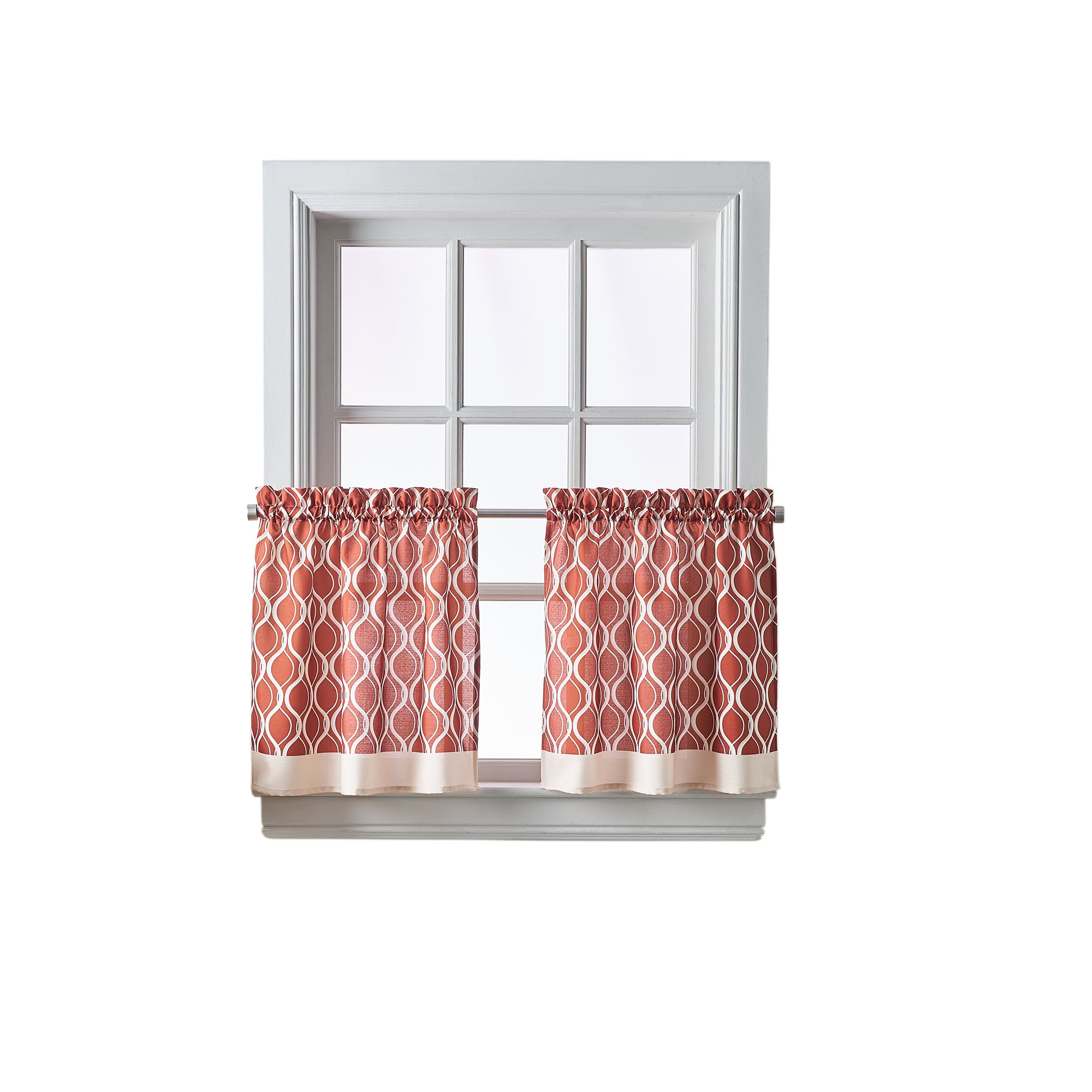 Take a chic and sophisticated approach to your window decor with this beautiful Morocco window tier! This tier is highlighted by a dramatic transitional style ogee print. Window tier features a wide, three-inch rod pocket to accommodate either a standard or decorative drapery rod. Morocco Ogee print tier is sold separately from the valance.