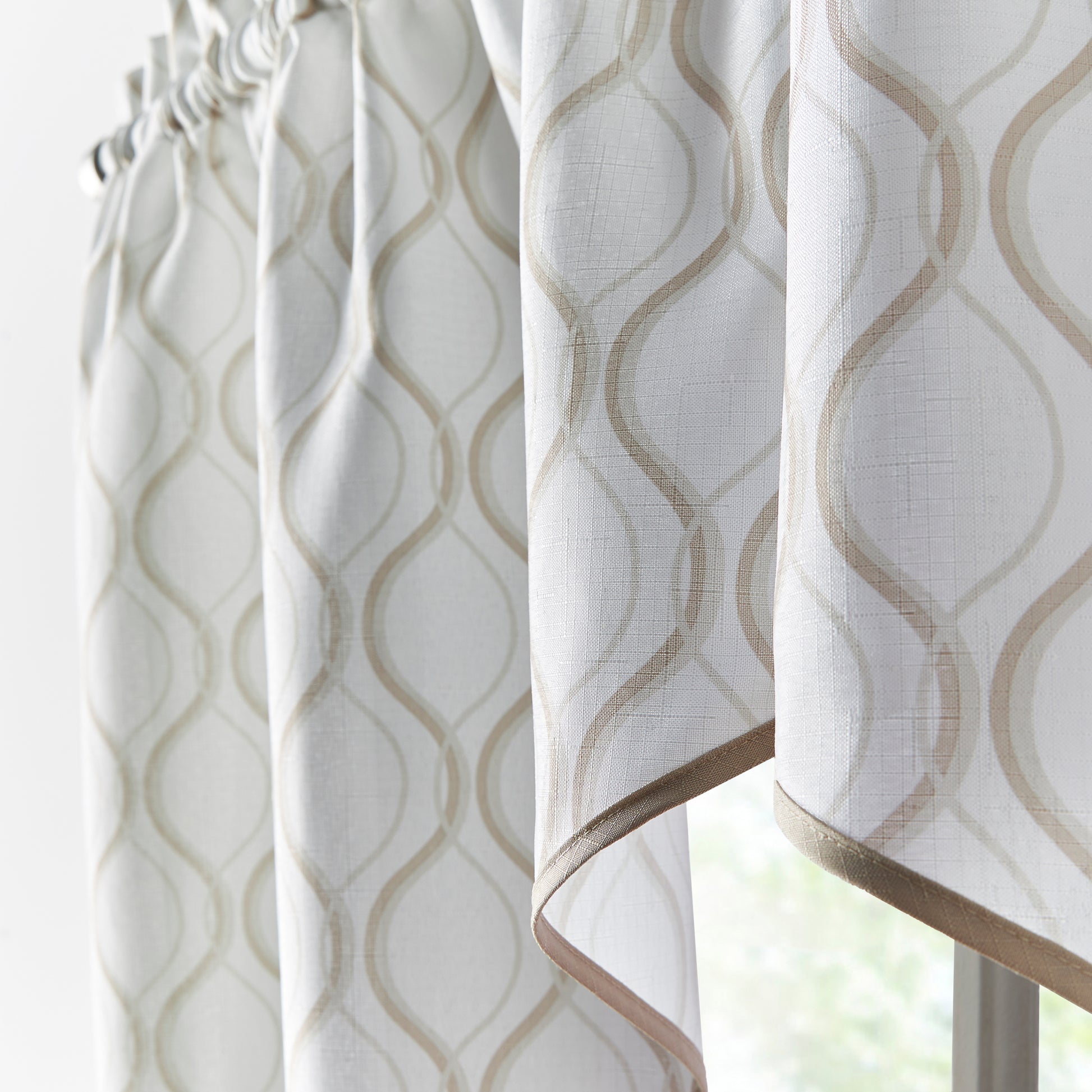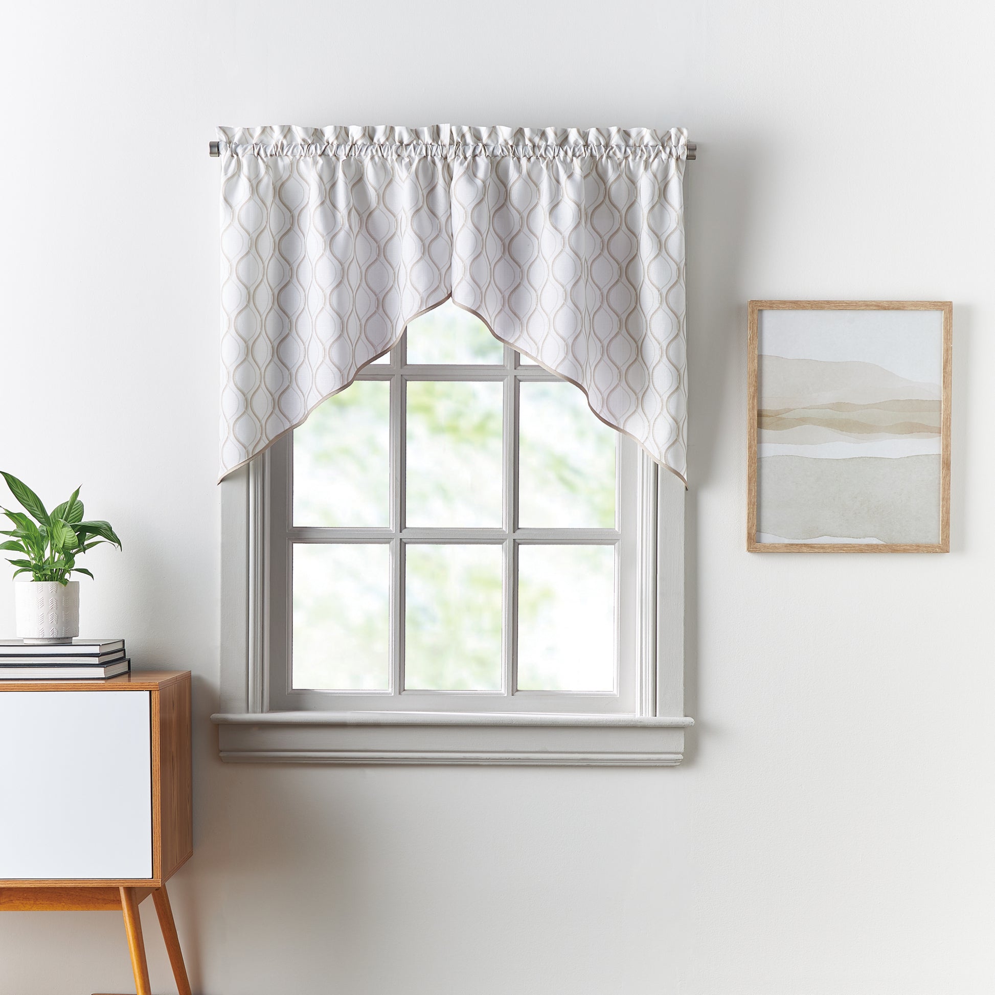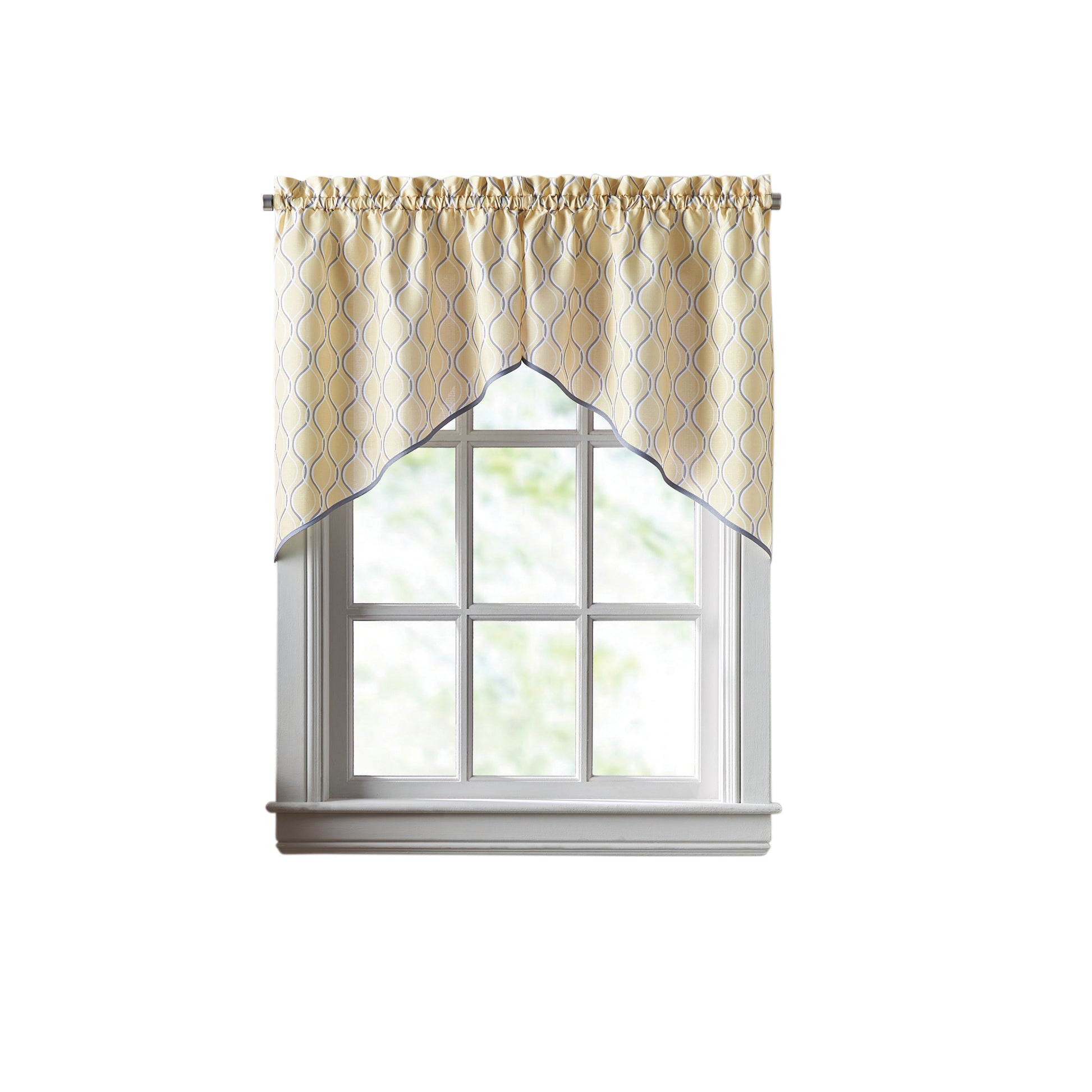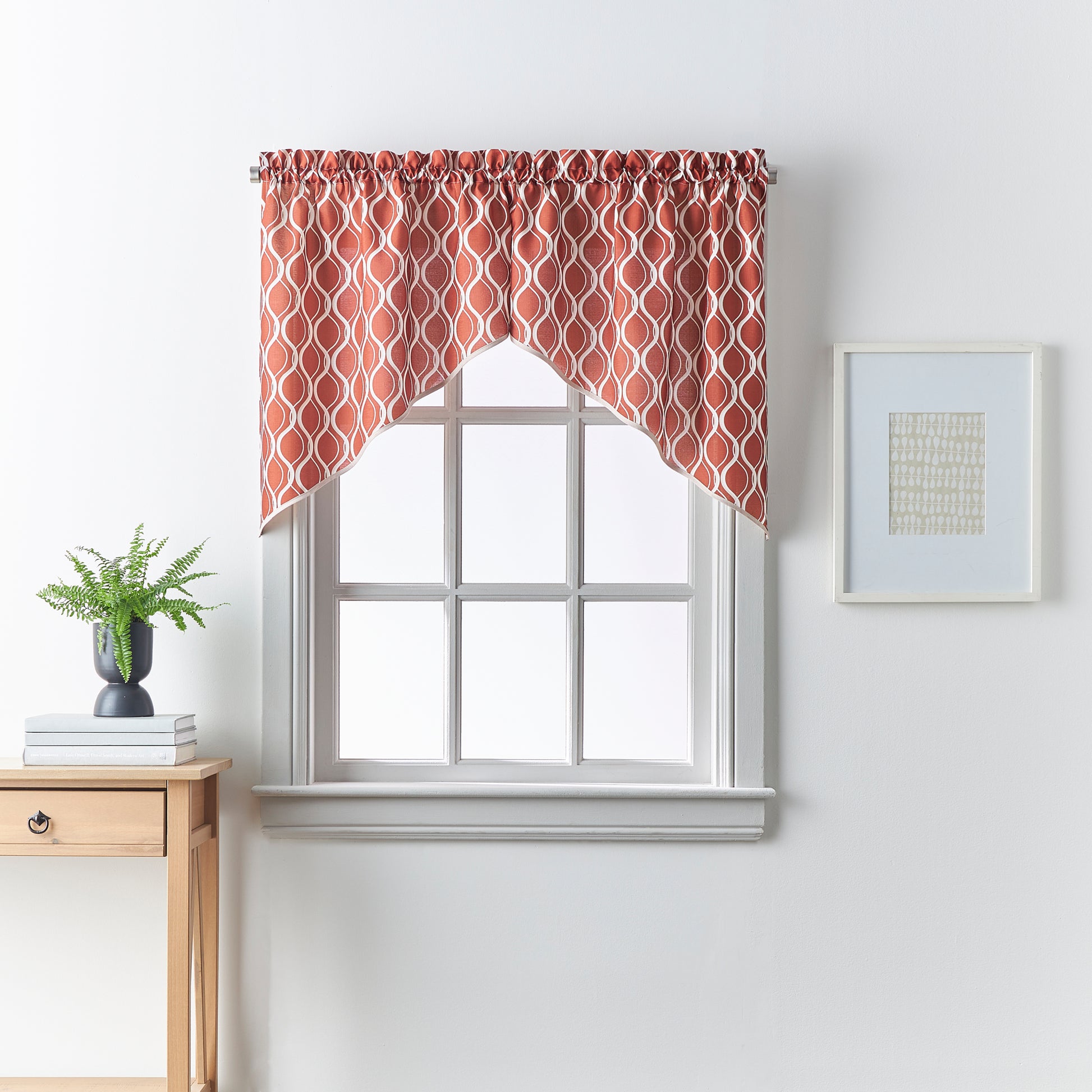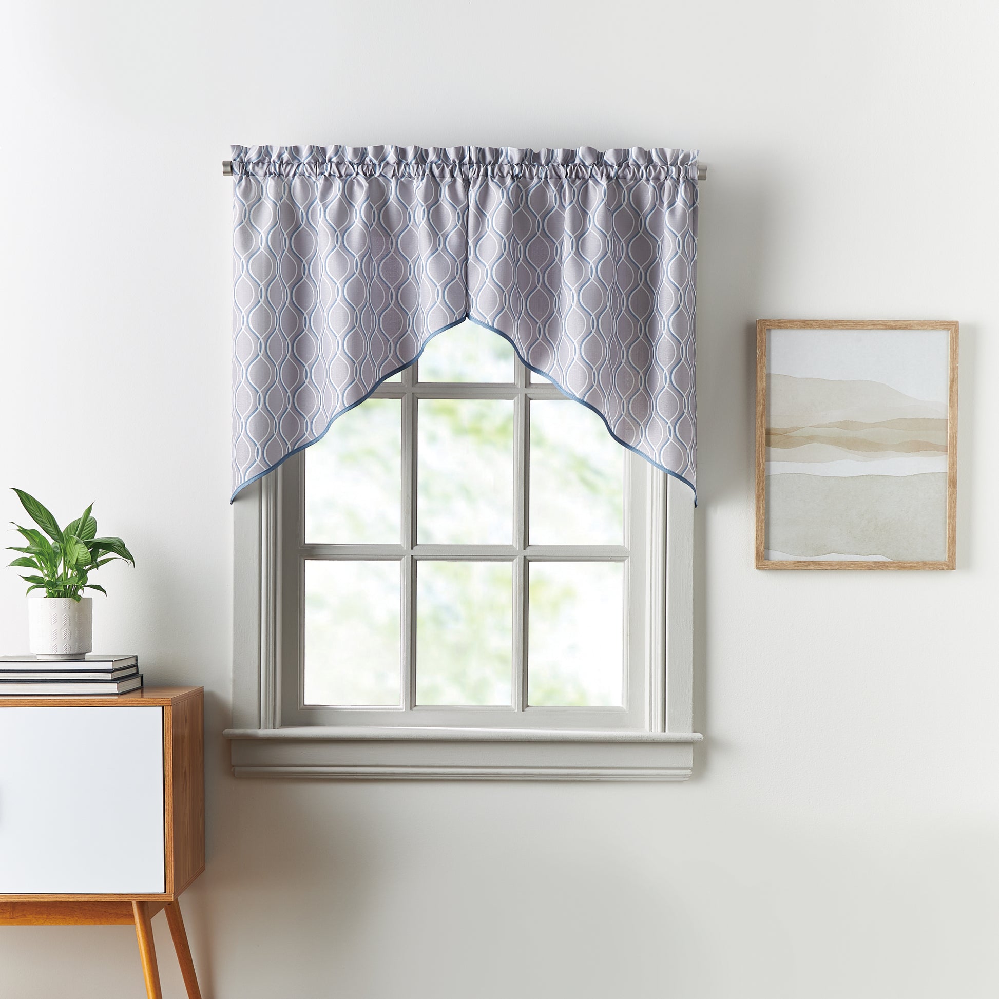 Take a chic and sophisticated approach to your window decor with this beautiful Morocco Swag Pair highlighted by a dramatic transitional style ogee print. Window valance features a wide, three-inch rod pocket to accommodate either a standard or decorative drapery rod.