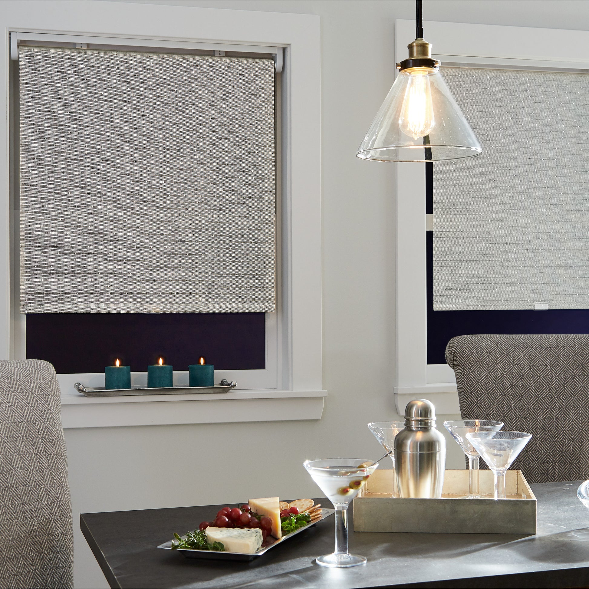 Give any room an inviting glow with Sparkle Twilight Light Filtering cordless roller shades. Designed from natural fibers and blended with durable synthetic, shades drape softly against your windows to create a custom look.