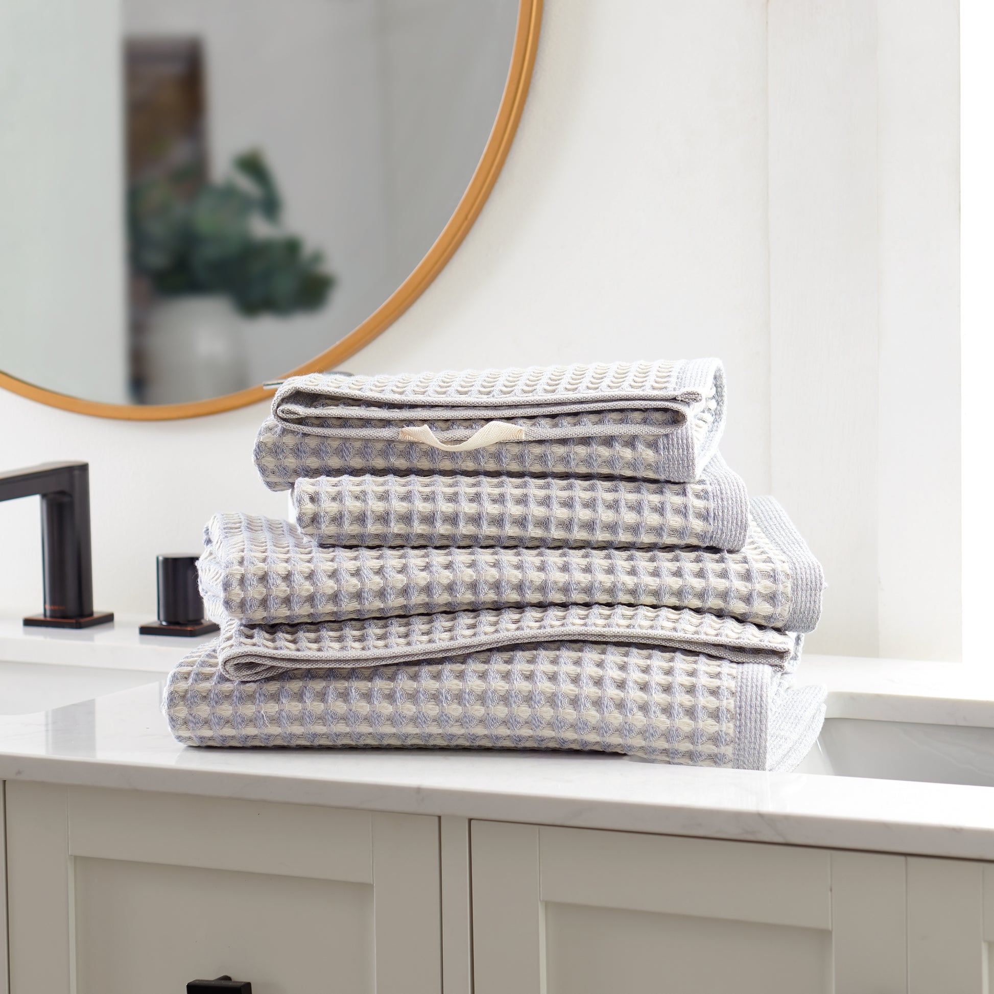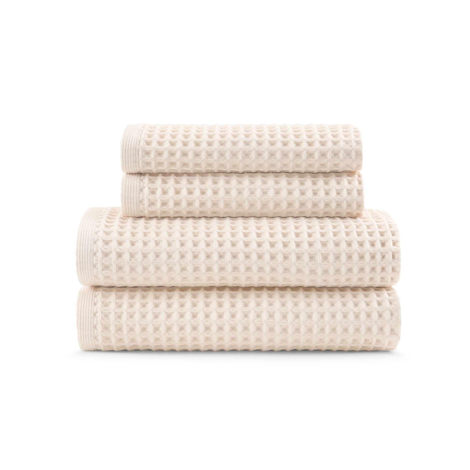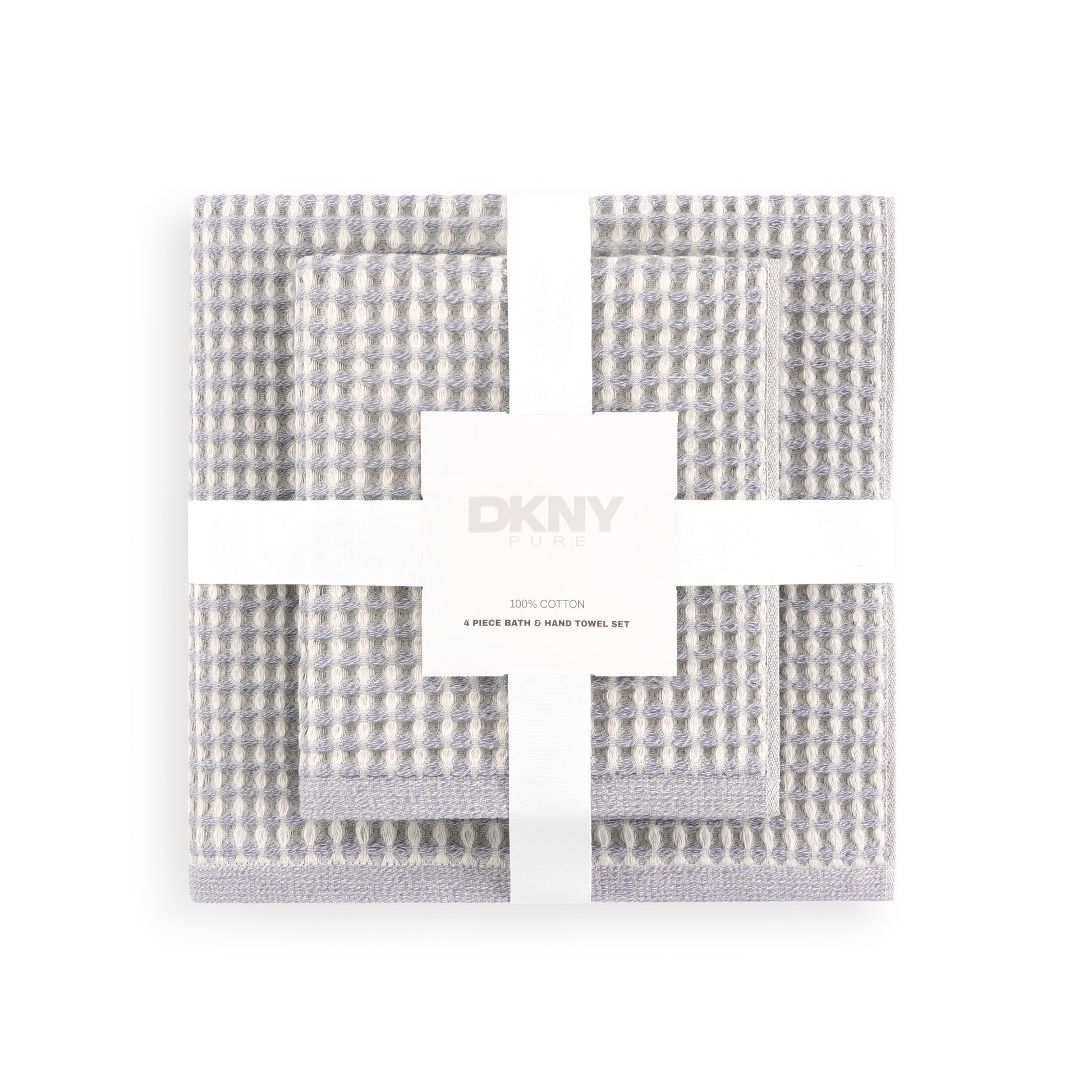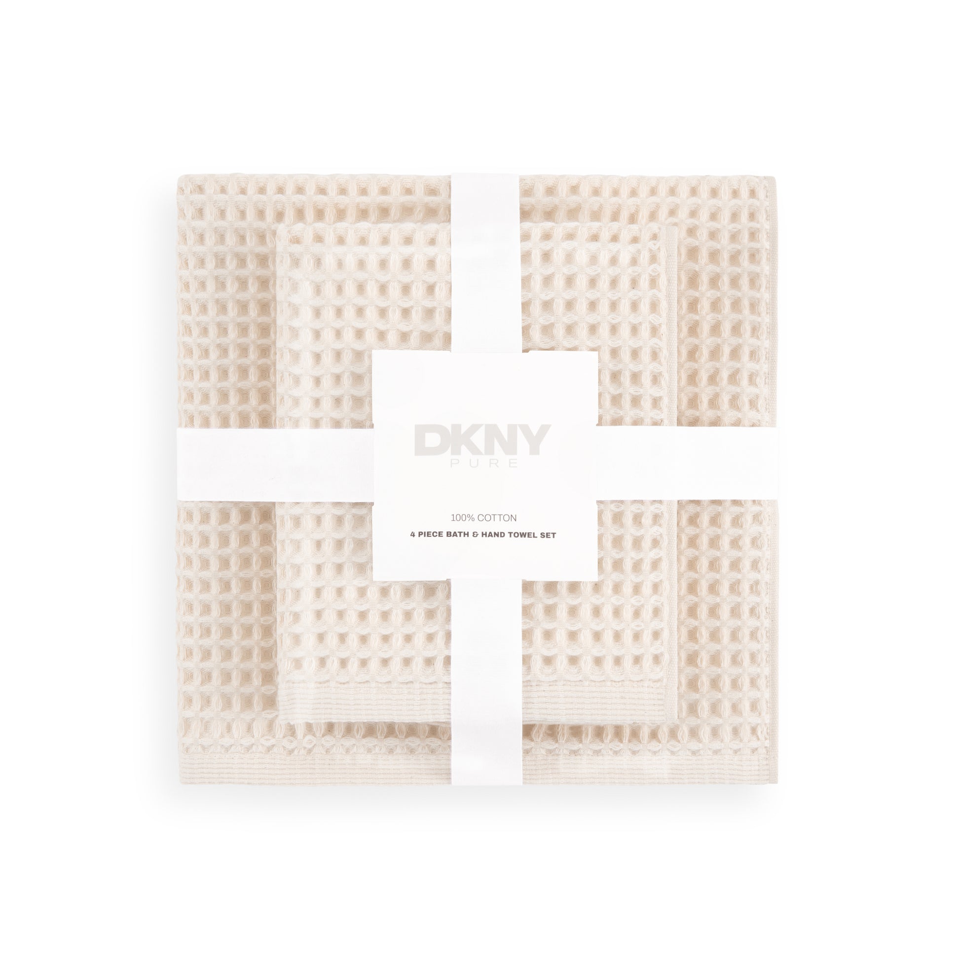 DKNY PURE Yarn Dyed Waffle Unbleached Cotton Bath & Hand Towel Set