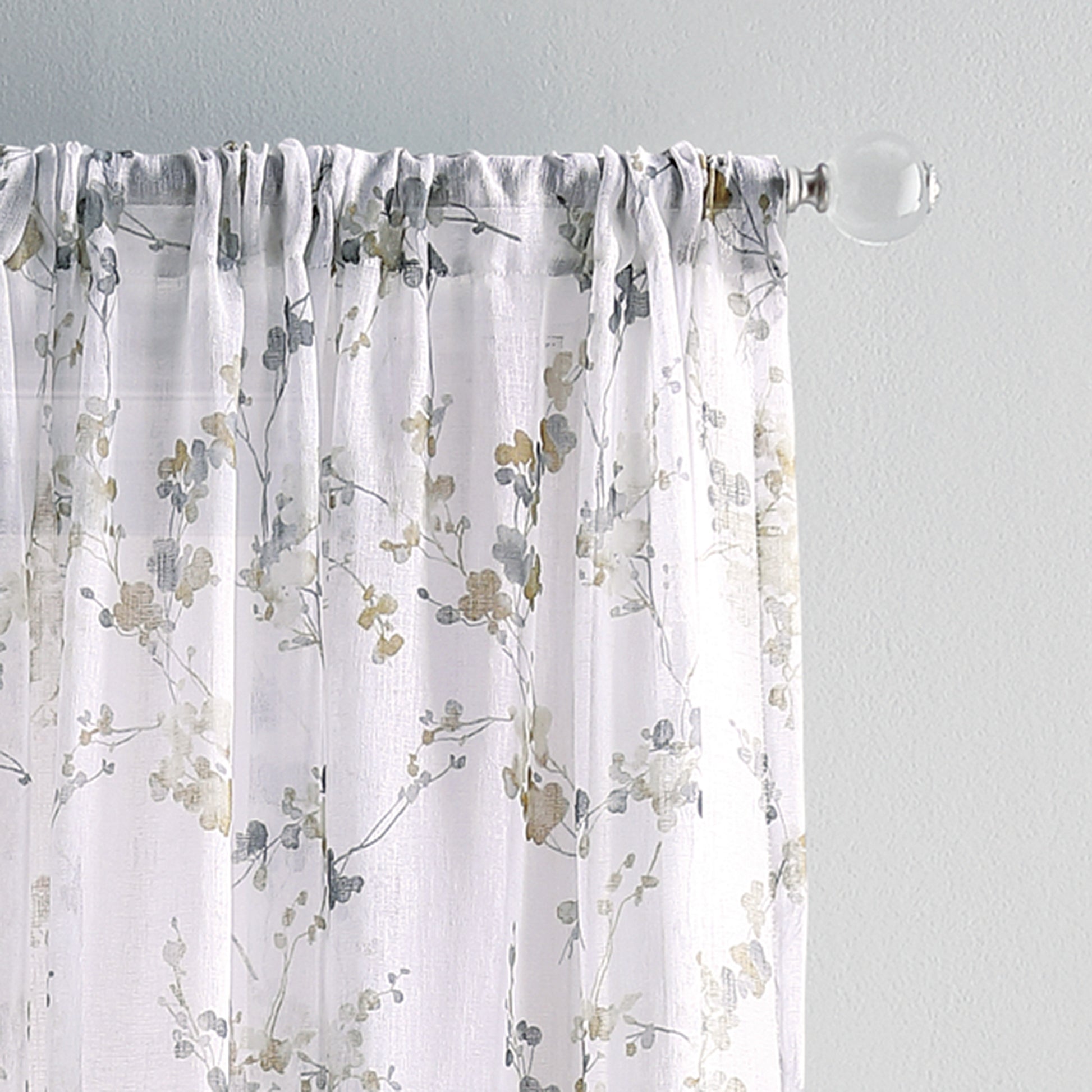 The DKNY Wallflower Sheer curtain panel takes on the delicate nature of fresh florals for a charming look in your home. Dainty florals are printed on this sheer panel for a pop of color. The airy appearance will add a relaxed ambiance in your home.