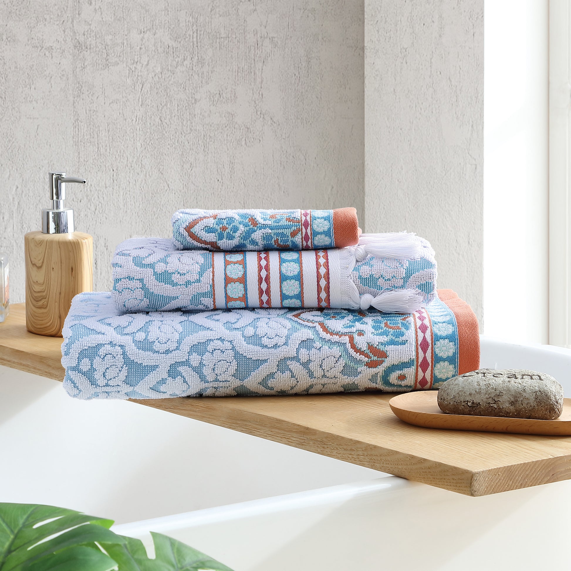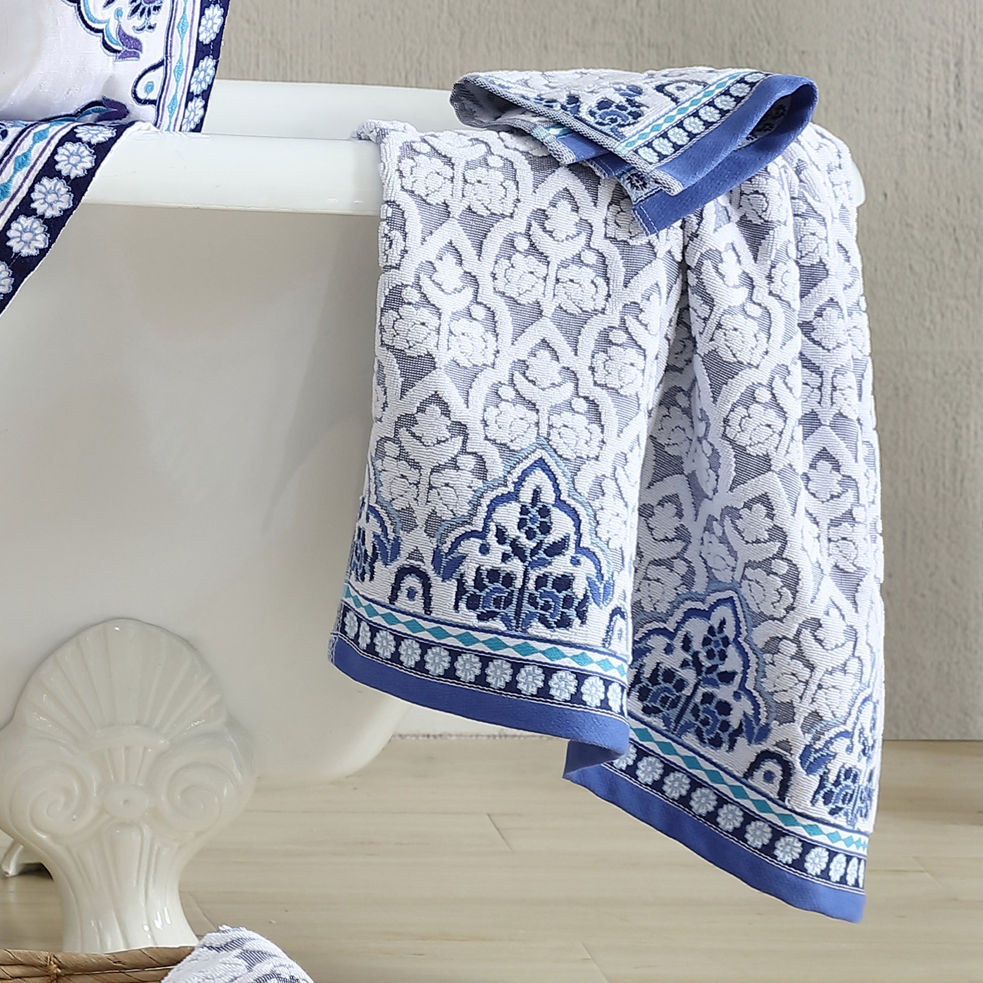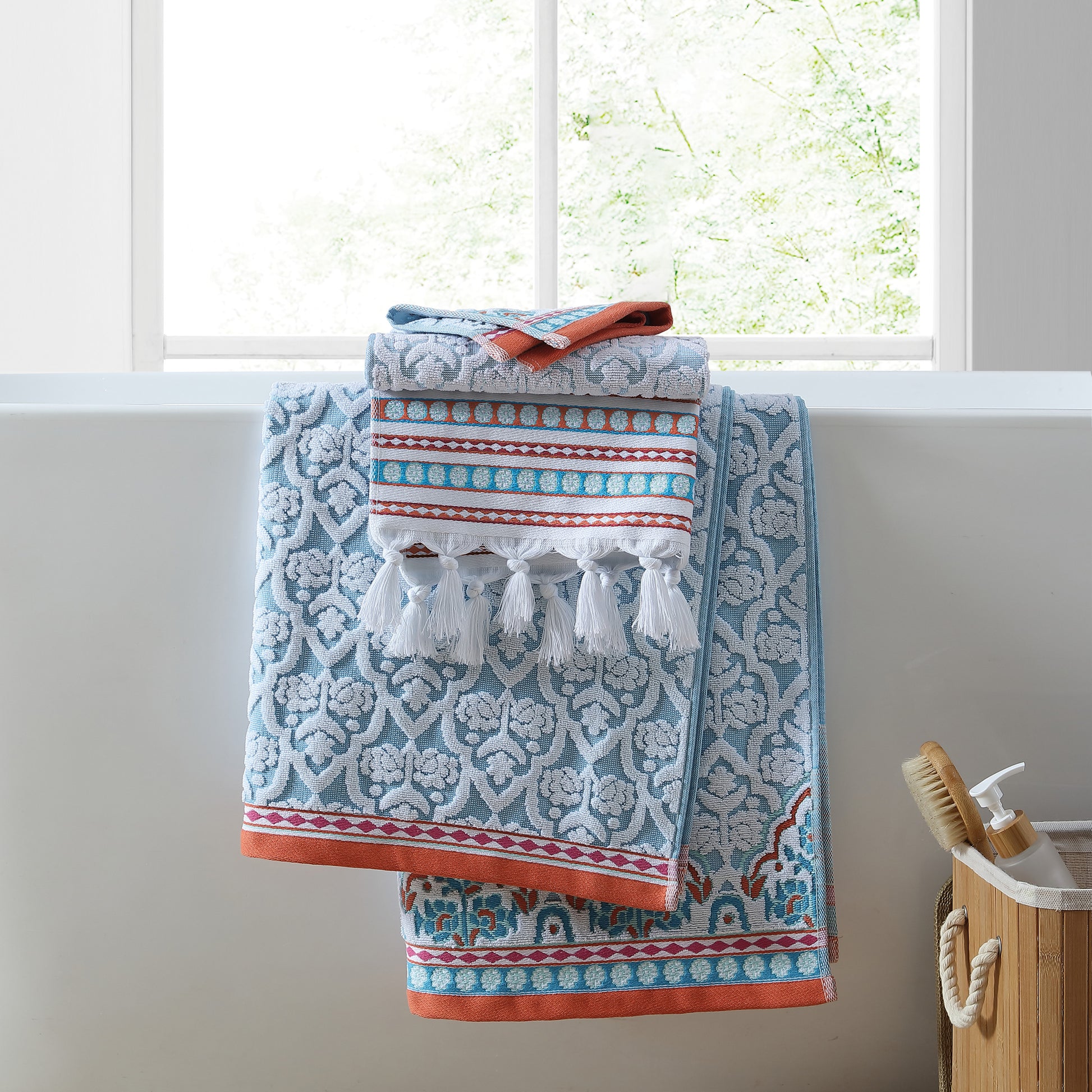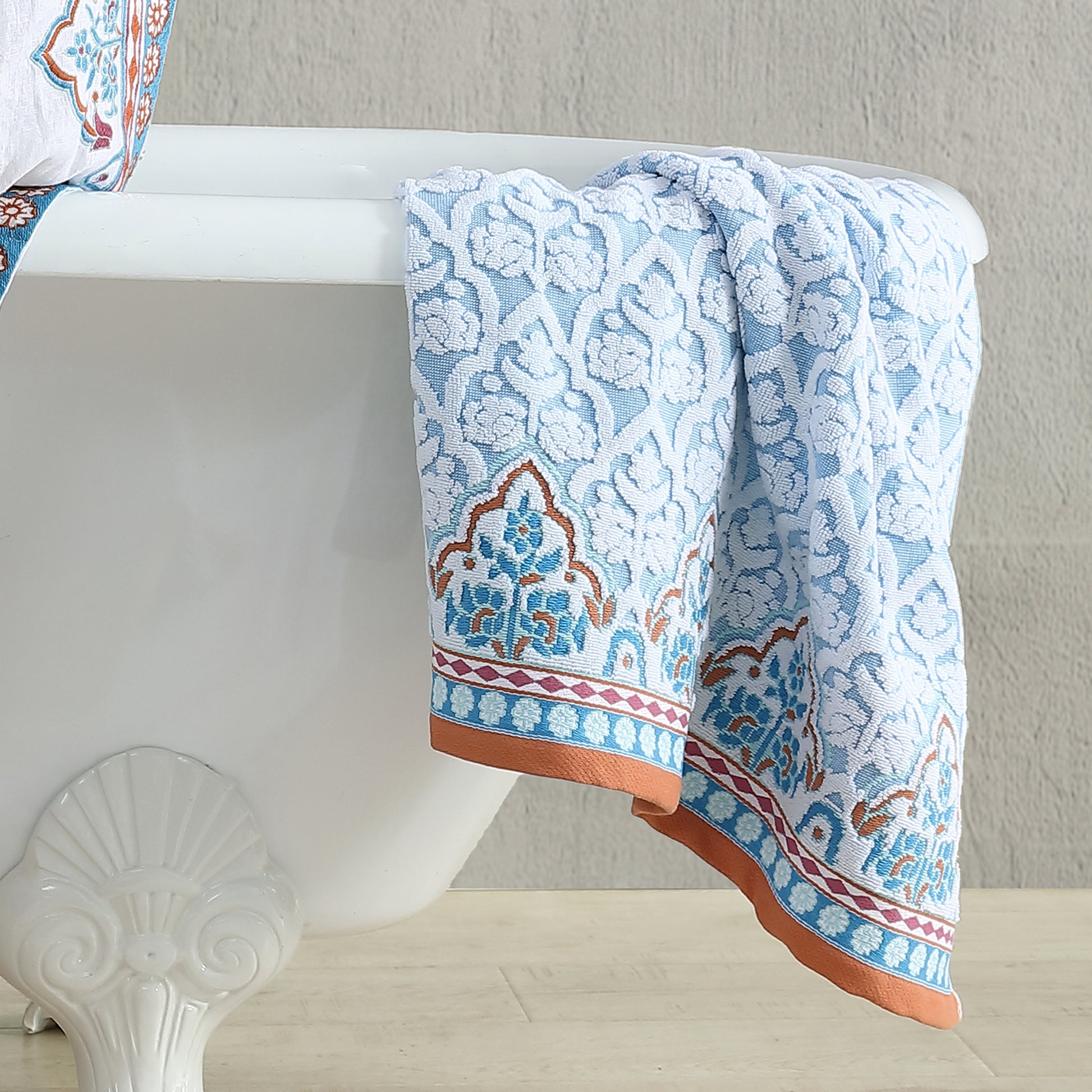 The intricate design and vibrant color on the John Robshaw Sheetal towel will give your bathroom an instant update. The sculpted jacquard emphasizes the beautiful all-over floral pattern. This towel's border design lends a final touch of color and interest. Fashioned with 100% cotton to be exceptionally soft and highly absorbent.