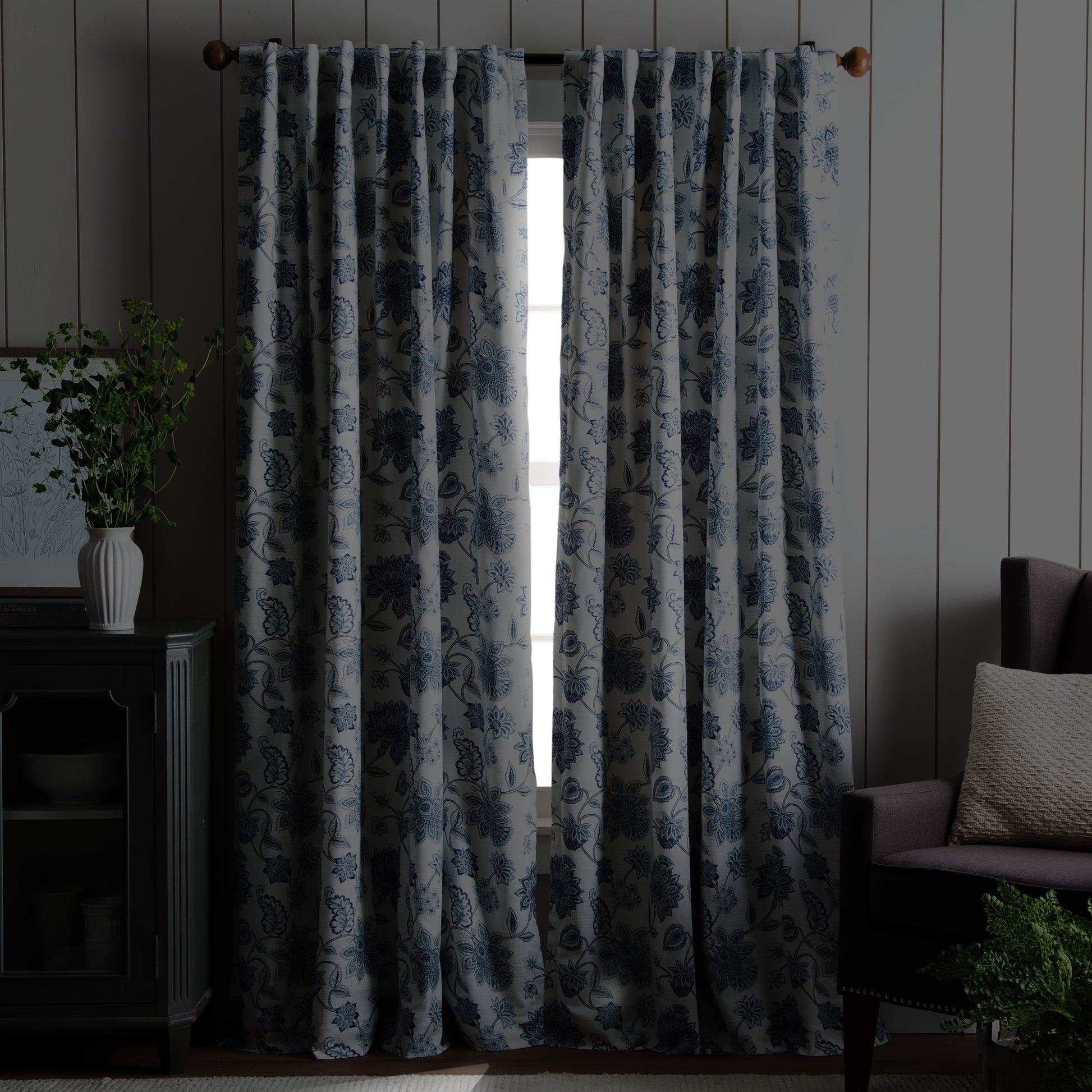 Radiate elegance and global style into your space with the Martha Stewart Jakarta Curtain Panels. In indigo or gold, printed florals captivate the room with vibrant color and interest for an everlasting luxurious impression. Enjoy the privacy of your home with this panel pair as it features a blackout lining. This allows you to rest and relax in privacy while blocking out unwanted sources of light in your home. Let your personal style flourish as you can choose to hang this style by the rod pocket or back tabs. This style can be hung easily with a standard curtain rod of your choice. For a full look outfit your window with both panels. Keep this style in great condition for the years to come by keeping it clean in a machine wash as needed.