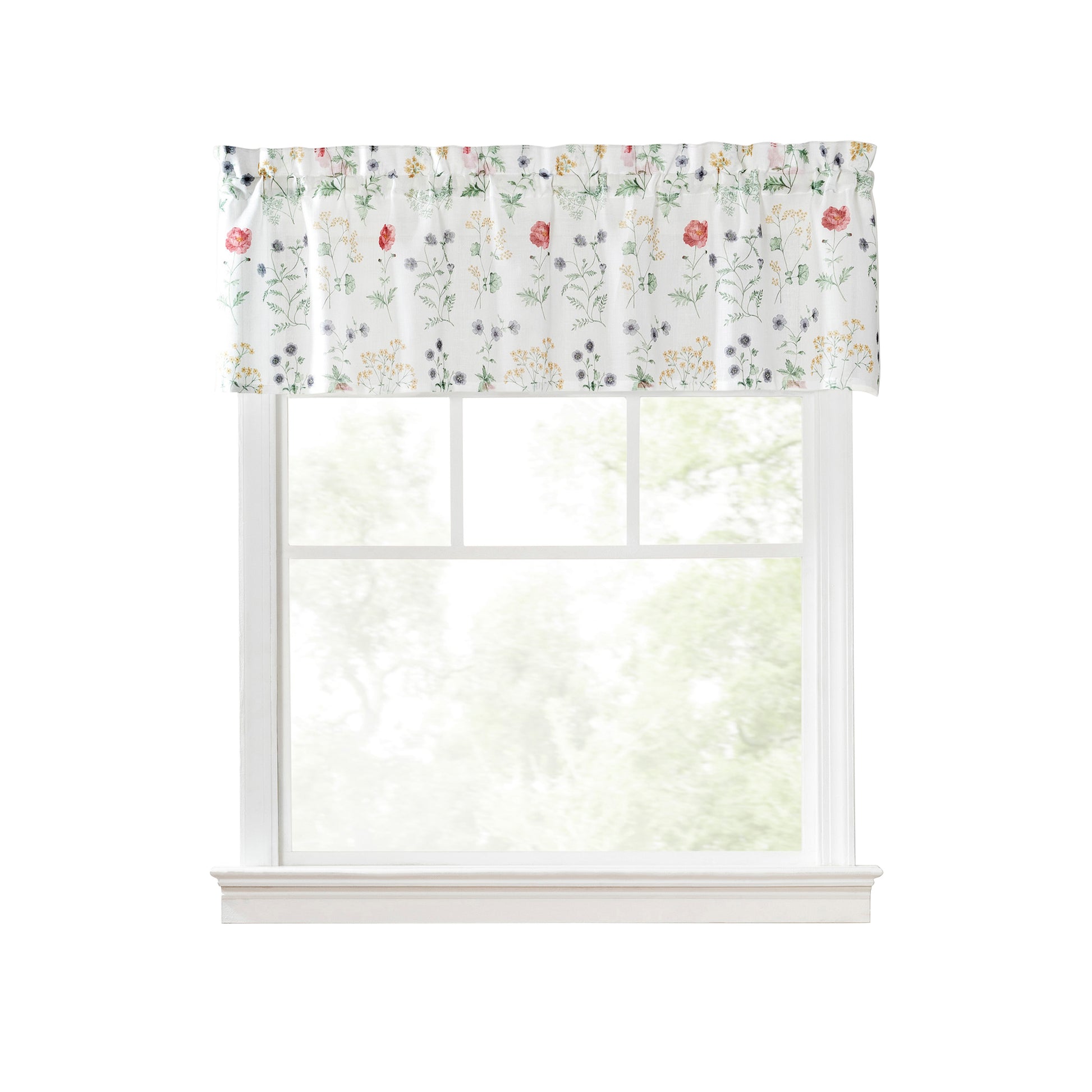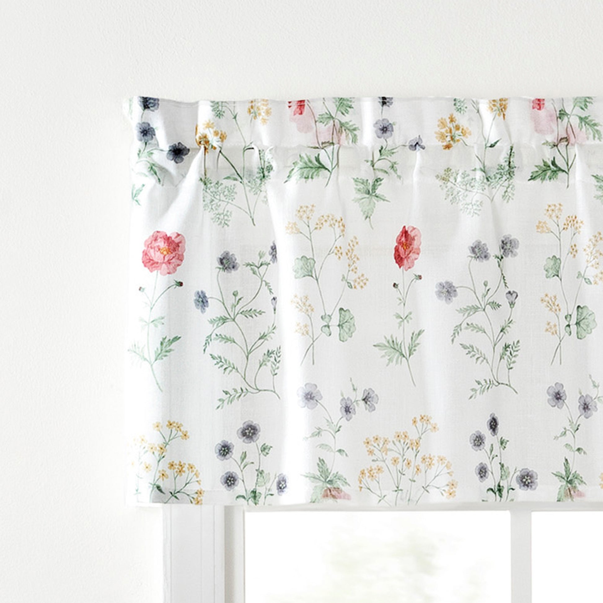 Bring a soft, feminine touch to your windows with the Martha’s Garden Valance by Martha Stewart. Delicate florals in gentle, understated hues bloom across the semi-sheer fabric, adding quiet elegance and a graceful hint of color to any room. The printed style drapes beautifully for an effortless, classic finish that perfectly frames your window.