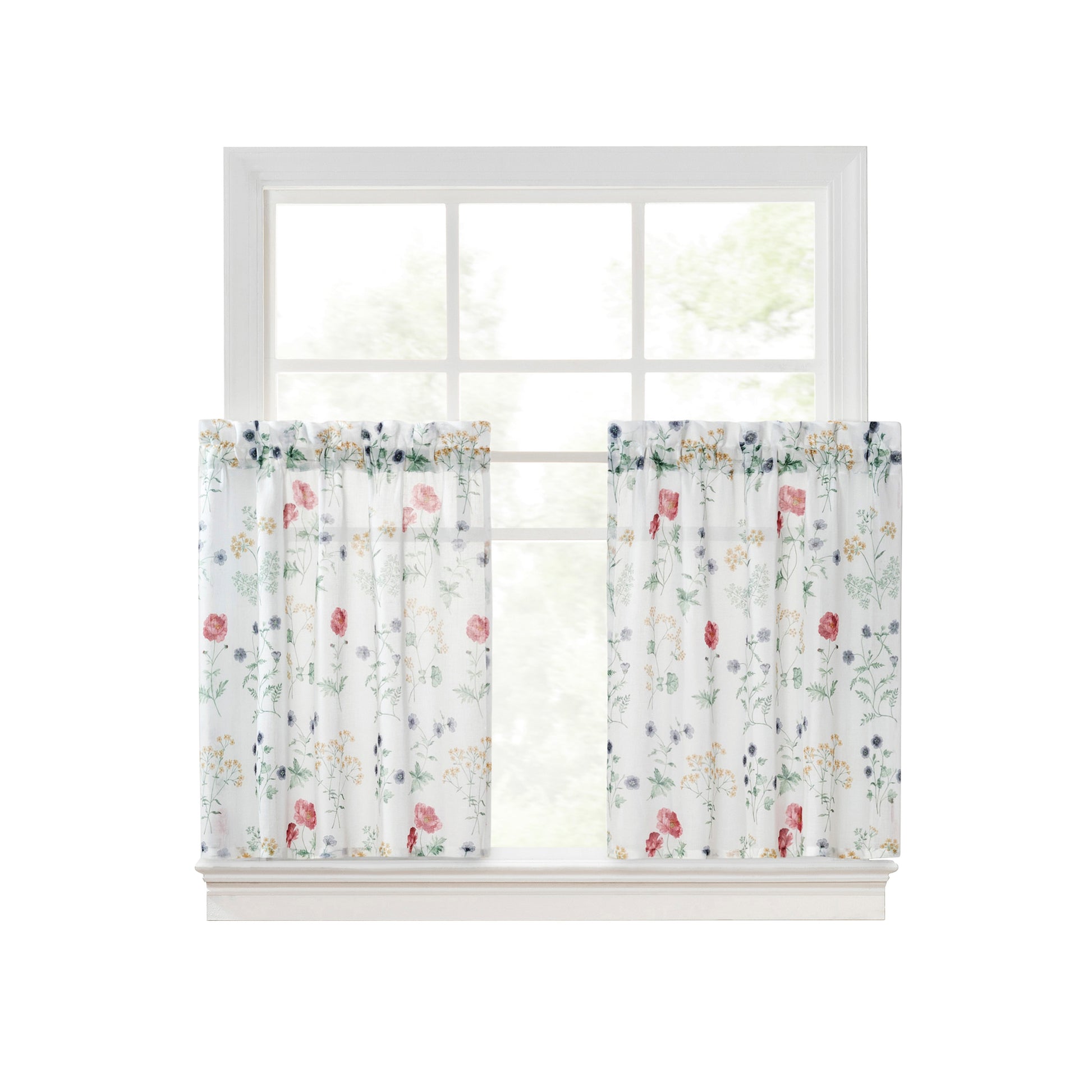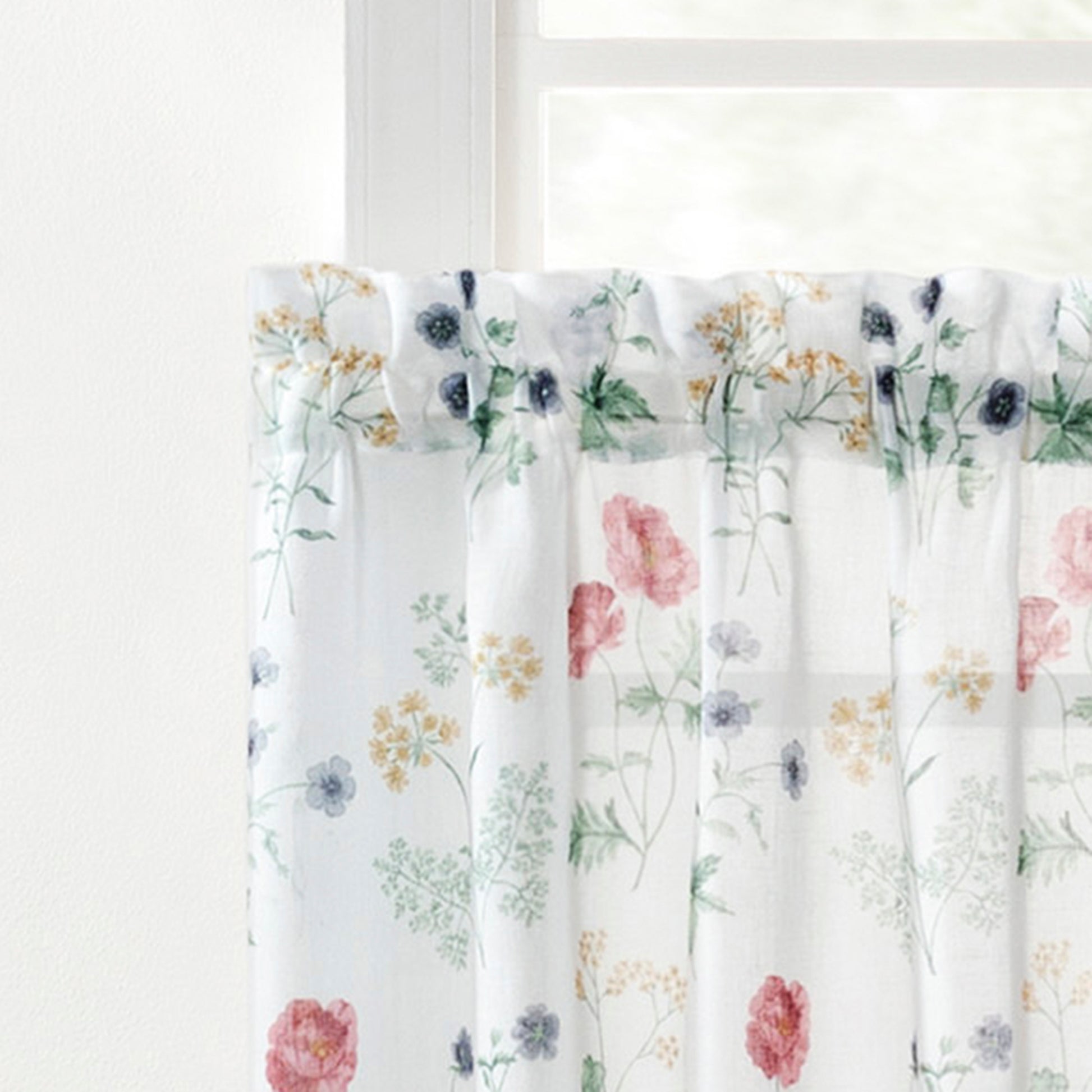 Give your space an inviting feel with the Martha Stewart Martha’s Garden Tier Set. The semi-sheer fabric is adorned with a sweet bouquet of florals in subtle, romantic tones, perfect for brightening your kitchen, bathroom, or breakfast nook with gentle charm. These tiers offer a soft, airy look that complements any cottage-inspired or traditional décor.