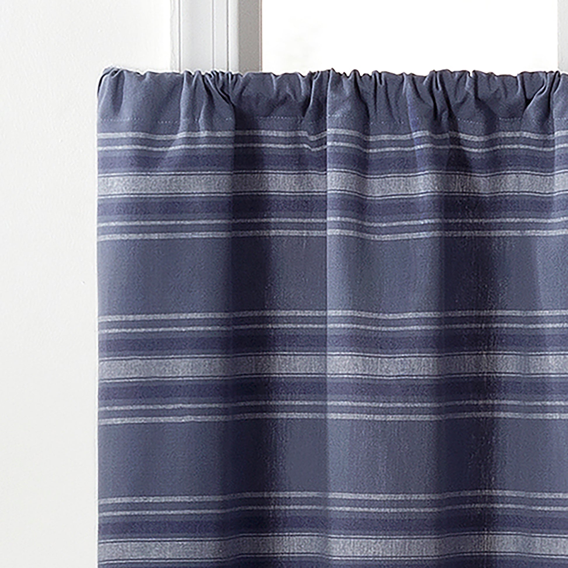 Refresh your kitchen, bathroom, or breakfast nook with the Martha Stewart Ruffle Stripe Tier Set. Crafted from 100% BCI cotton, these light-filtering tiers brighten your space with soft, natural light. The subtle stripes keep things classic, and the playful ruffle hem lends a sweet, elevated touch.