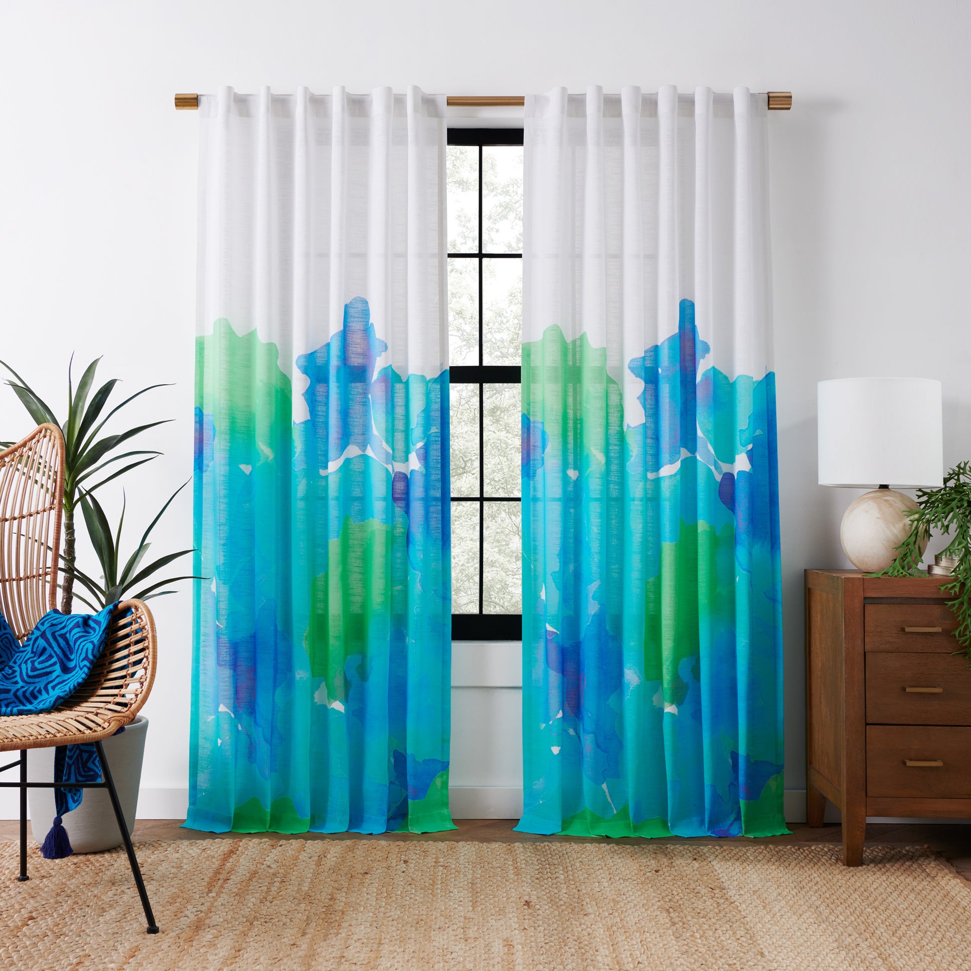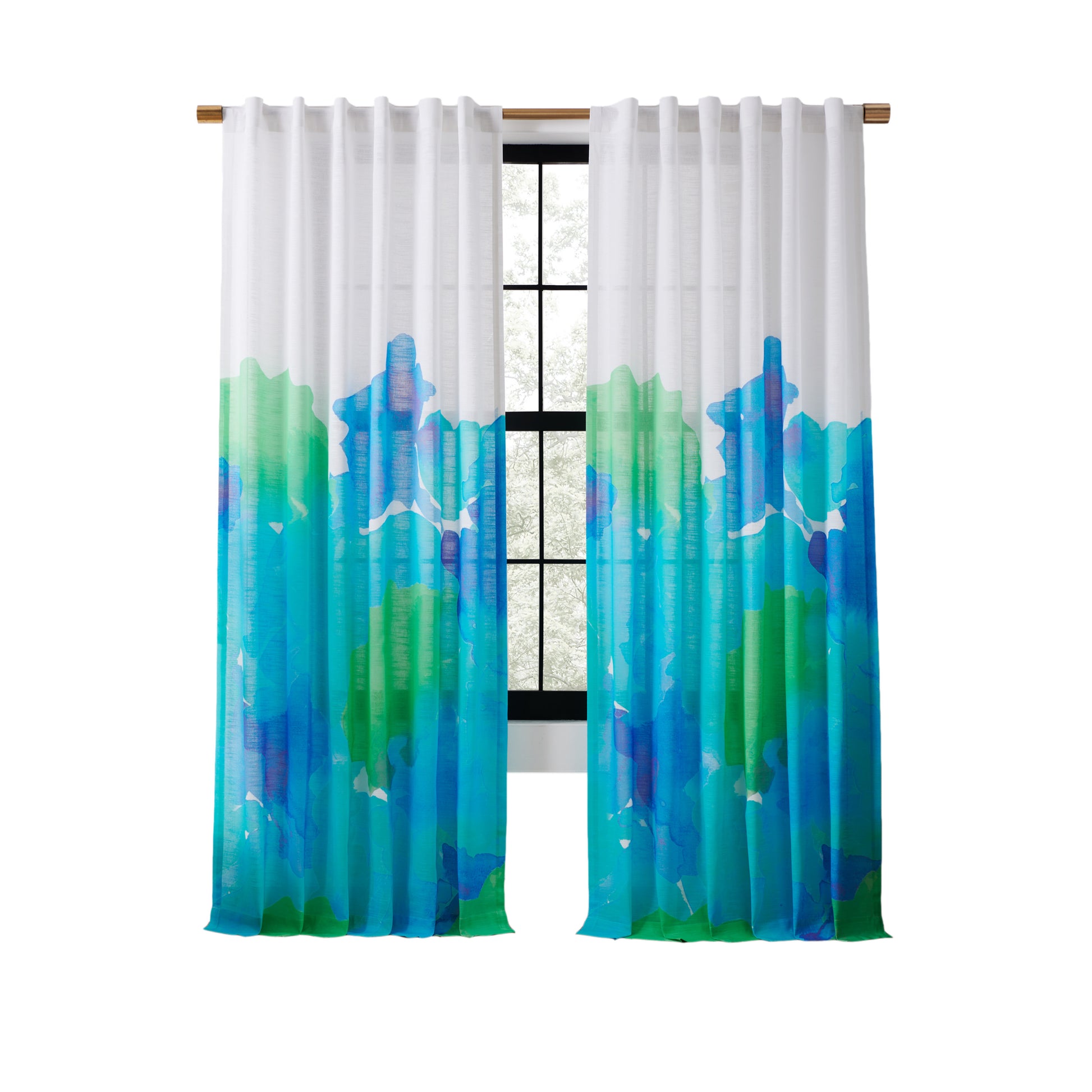 Transform your window view into a tropical paradise with the Rochelle Porter Caribbean Sea Curtain Panel. Inspired by the captivating ocean waves and deep shades of blue that mesmerized Rochelle instantly, she recreated that seascape on a curtain panel. The calming pattern is digitally printed on 100% cotton for a soft, airy feel for your home, emulating seaside living. The single panel can be hung from the rod pocket on a curtain rod of your choice.
