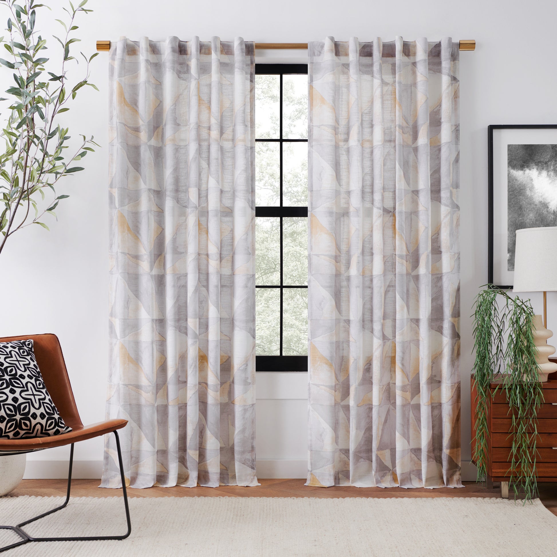 Reflect a sense of fashionable style in your home when you accessorize your window with the Rochelle Porter Prism Curtain Panel. Geometric angles in shades of gray, yellow, and ivory work together precisely to portray a prism effect. The pattern is digitally printed on 100% cotton for a relaxed feel. The light filtering panel will welcome sunlight, leaving a bright impression in your home. Use the rod pocket to hang this single panel on a curtain rod of your choice.