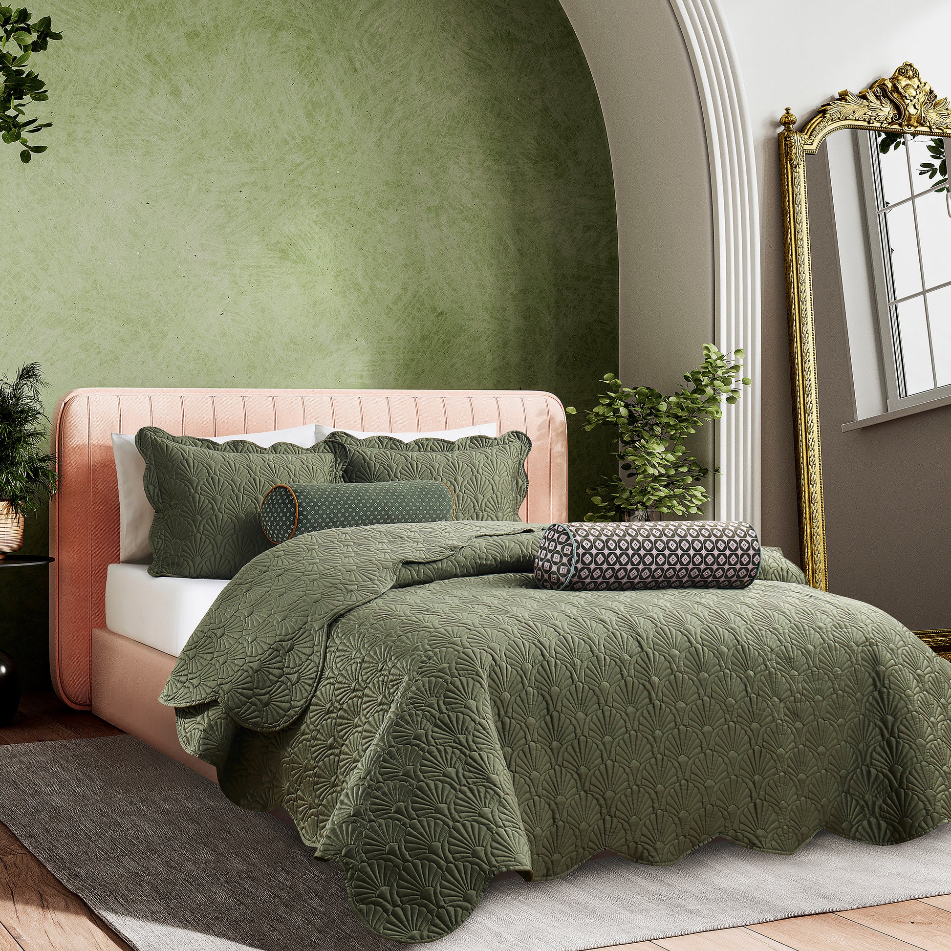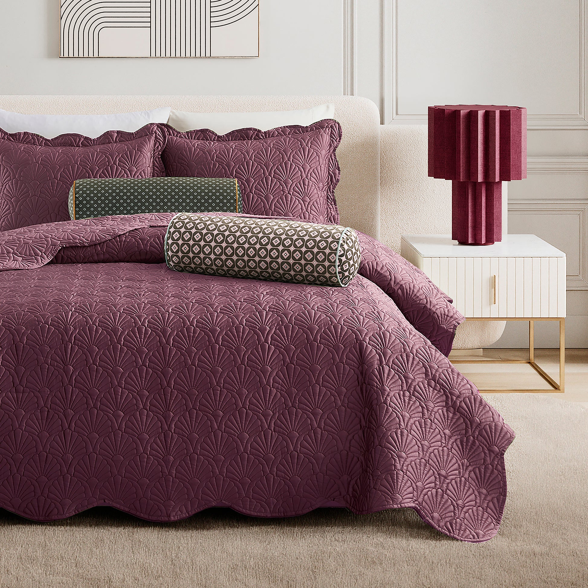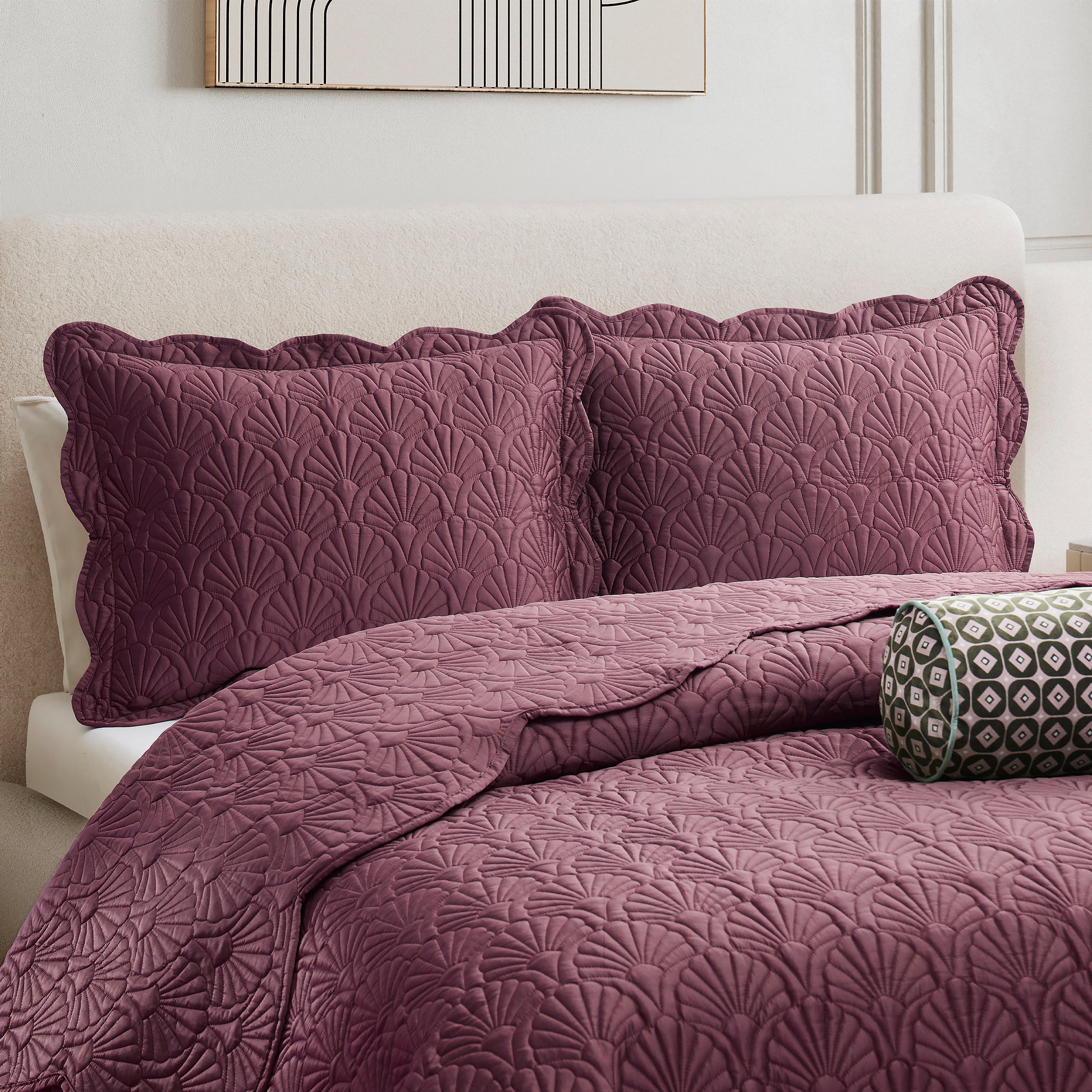 Bring a touch of vintage glamour to your bedroom, reimagined for a modern space with the Ted Baker Deco Shells Quilt Set. An elegant shell quilt lends this quilt a distinct appeal, adding texture, dimension, and unmatched style. Scalloped edges add a touch of whimsy to complete this look. Lightweight yet cozy, it’s perfect for layering or standing stylishly on its own.
