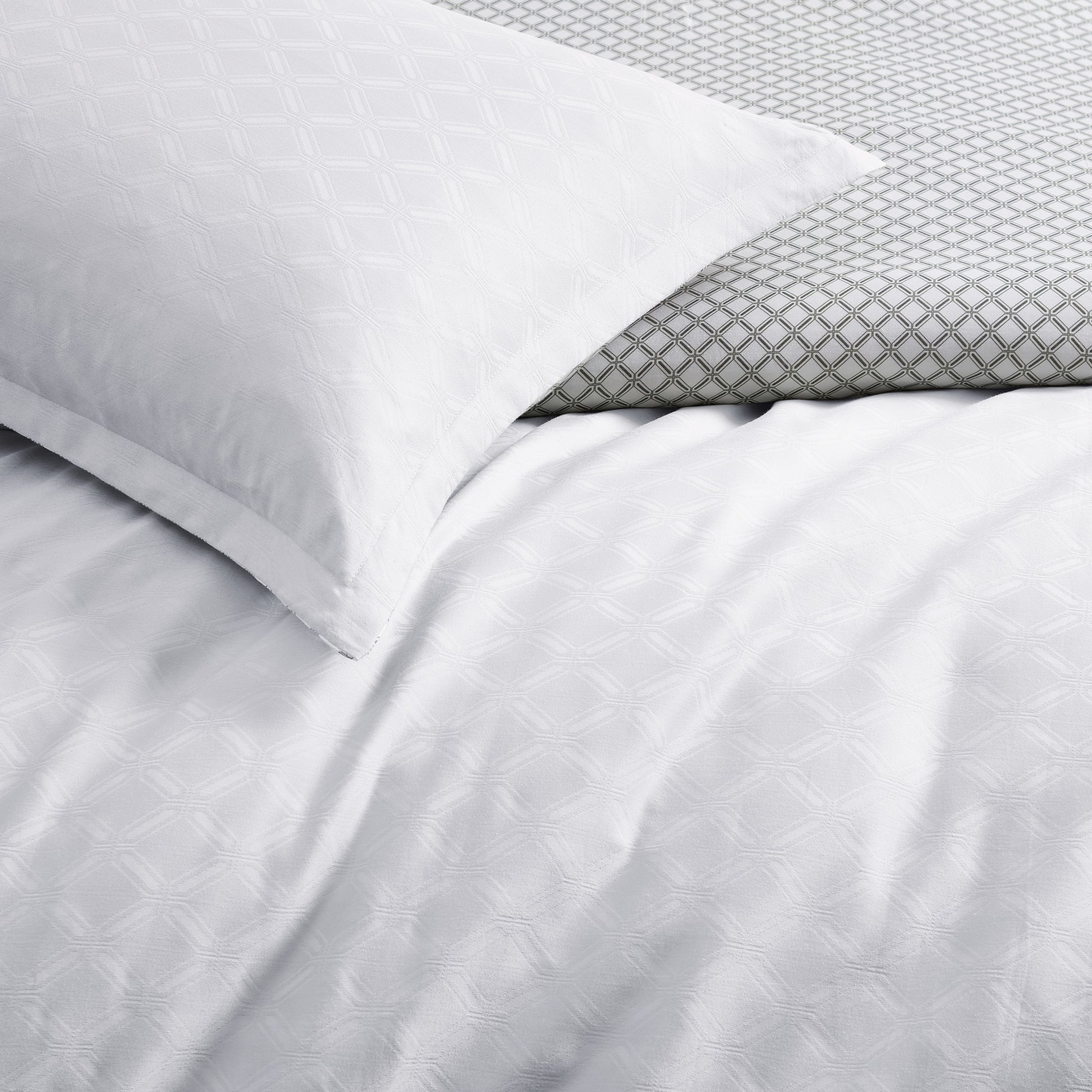 Elevate your sleep sanctuary with the refined simplicity of the Ted Baker Pollsy Jacquard Duvet Set. Woven from 100% cotton, this set blends breathable comfort with a sophisticated, tone-on-tone geometric pattern that feels timeless. The reverse features a coordinating printed pattern bringing modern contrast, charm, and elegance.