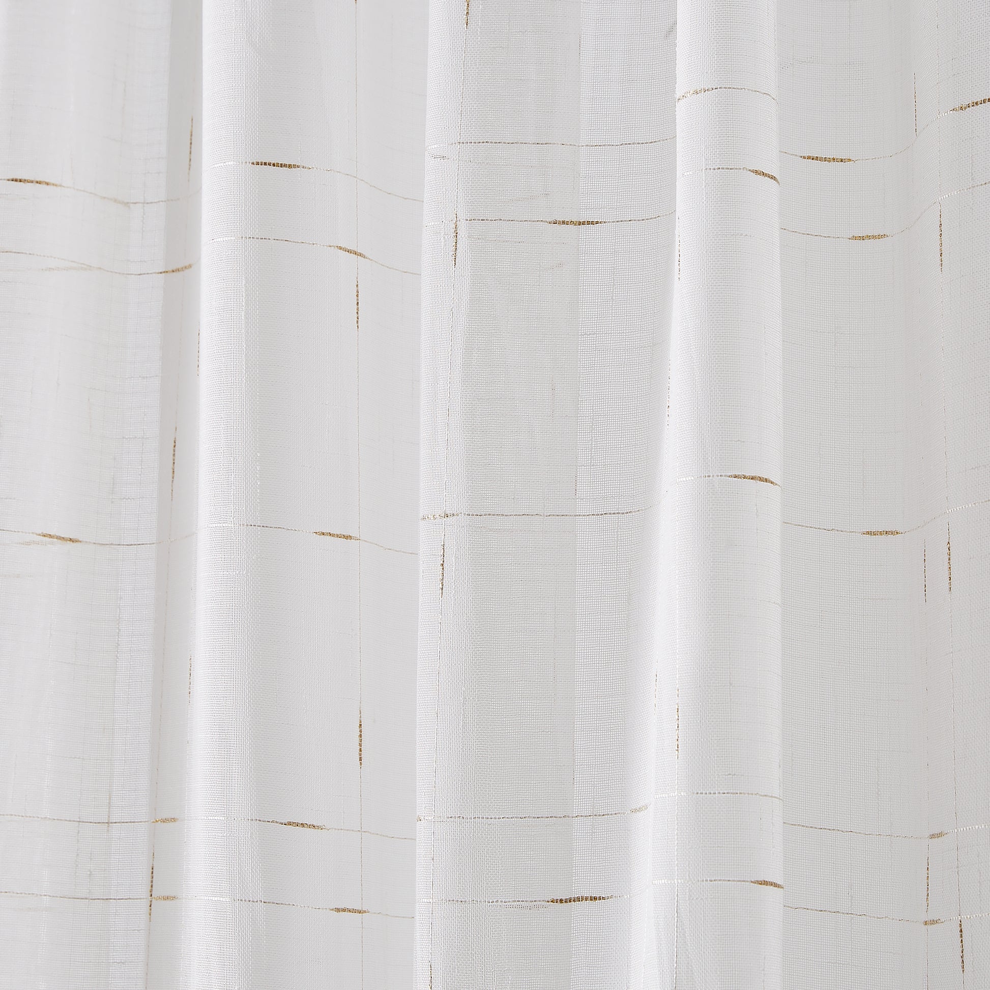 An enchanting look is embodied in the details of the Metallic Grid Curtain Panel Pair by DKNY. The light and airy appeal fills the room with springtime cheer from the sunlight gently flowing into the room. The panel set features a subtle gold grid pattern for a dash of stylish interest.